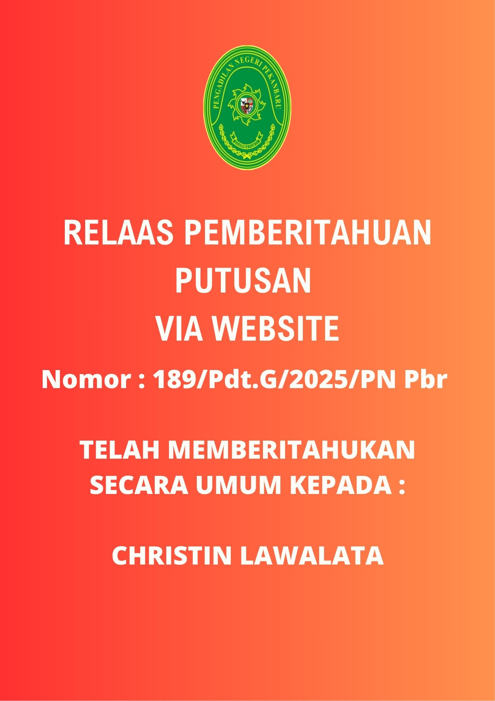 | 114/Pdt.G/2026/PN.Pbr | AGUS ELVIN SEMBIRING | |||
