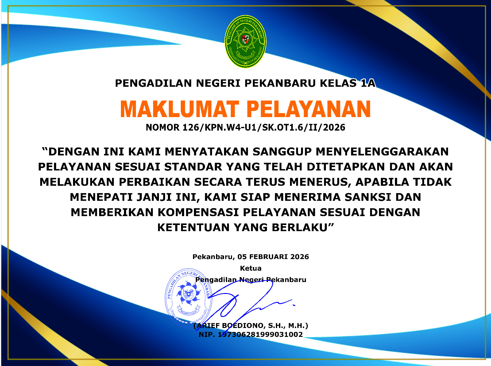 Selasa, 21-04-2026 | 03:13:40 WIBKetua Pengadilan Negeri Pekanbaru Bapak Arief Boediono, S.H., M.H. Menghadiri Focus Group Discussion (FGD) tindak lanjut Penanganan Temuan Uang Palsu di Wilayah Riau bersama BI Pekanbaru, Rabu - 15 April 2026. Ketua Pengadilan Negeri Pekanbaru Bapak Arief Boediono, S.H., M.H. Menghadiri Focus Group Discussion (FGD) tindak lanjut Penanganan Temuan Uang Palsu di Wilayah Riau bersama... |