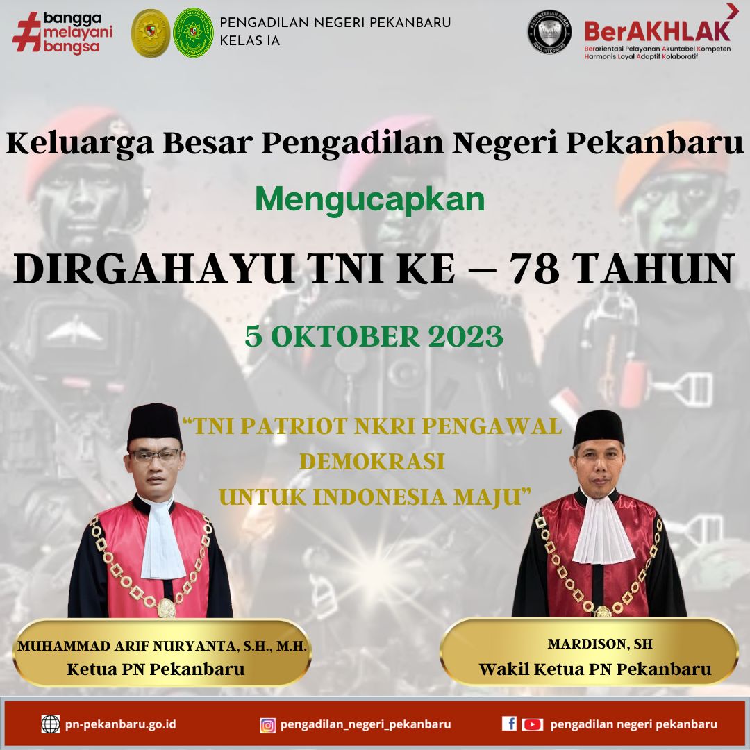 Keluarga Besar Pengadilan Negeri Pekanbaru Kelas IA Mengucapkan DIRGAHAYU TNI KE – 78 TAHUN