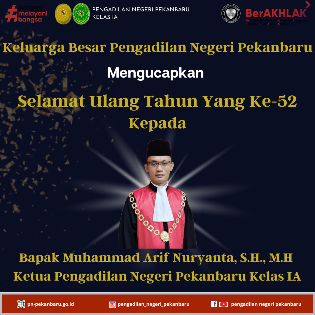 Keluarga Besar Pengadilan Negeri Pekanbaru Kelas IA Mengucapkan Selamat Ulang Tahun Yang Ke-52