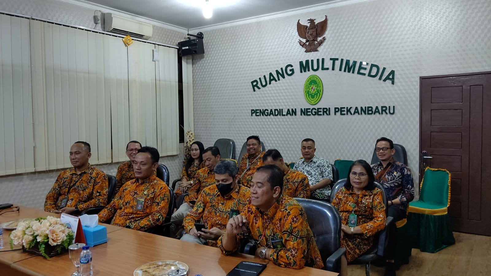 Pekanbaru, Senin 10 Oktober 2023 - Bertempat di Ruang Multimedia Pengadilan Negeri Pekanbaru dilaksanakan Pembinaan Teknis dan Administrasi Yudisial Secara Virtual Bagi Ketua, Wakil Ketua, Hakim, Panitera dan Sekretaris pada Pengadilan Tingkat Banding dan Tingkat Pertama untuk Empat Lingkungan Peradilan Seluruh Indonesia oleh Ketua Mahkamah Agung RI Bapak Prof. Dr. H. M. Syarifuddin , S.H., M.H.. Acara ini dihadiri oleh Ketua PN Pekanbaru Bapak Muhammad Arif Nuryanta, S.H., M.H., Wakil Ketua Bapak Mardison, SH, Para Hakim Karir dan Hakim Adhoc, Panitera dan Sekretaris Pengadilan Negeri Pekanbaru.