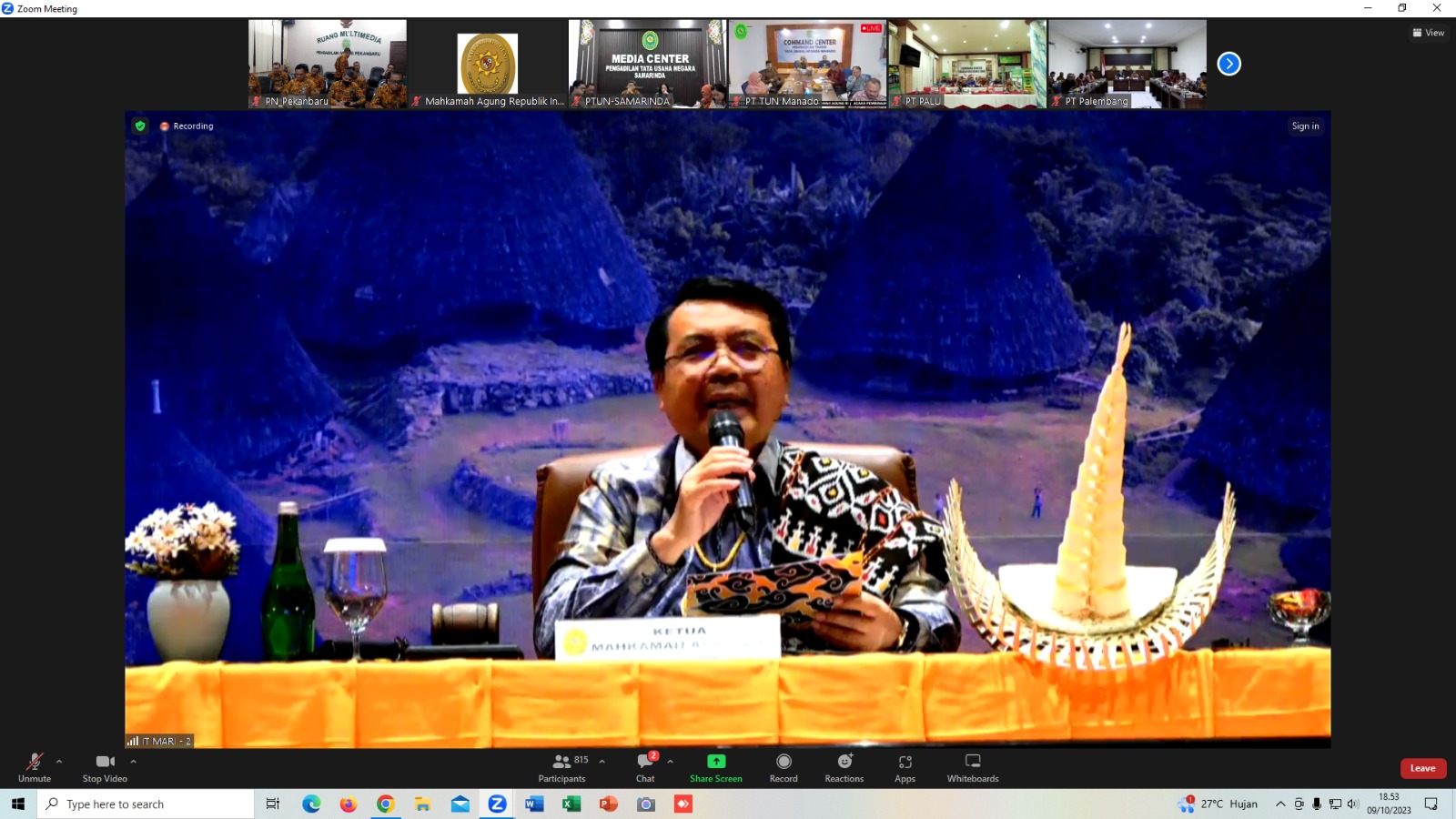 Dalam acara tersebut, melalui daring yang dipimpin oleh Yth. Ketua Mahkamah Agung R.I. dalam sambutannya Terdapat Beberapa hal yang disampaikan dan dijelaskan oleh Ketua Mahkamah Agung R.I, Beberapa hal yang disampaikan tersebut, Yaitu :