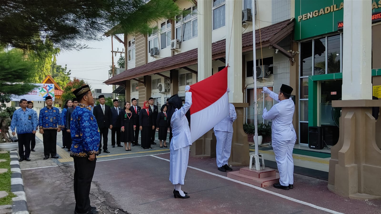 Pekanbaru – Sabtu, 28 Oktober 2023. Upacara memperingati Hari Sumpah Pemuda ke-95 dilaksanakan pada hari Sabtu, tanggal 28 Oktober 2023 di halaman Kantor Pengadilan Negeri Pekanbaru kelas 1A. Upacara tersebut dipimpin oleh Ketua Pengadilan Negeri Pekanbaru selaku Pembina Upacara. Turut serta dalam upacara tersebut Wakil Ketua Pengadilan Negeri Pekanbaru, Para Hakim, Hakim Ad Hoc Tipikor, Hakim Ad Hoc PHI, Panitera, Sekretaris, Pejabat Struktural, Pejabat Fungsional, Pelaksana, dan Pegawai Pemerintah Non Pegawai Negeri (PPNPN) pada Pengadilan Negeri Pekanbaru. Upacara ini diselenggarakan dengan khidmat dan tertib.Â