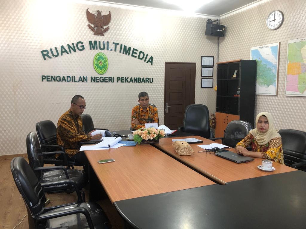 Pekanbaru – Jumat, 24 November 2023. Bertempat di Ruang Multimedia Pengadilan Negeri Pekanbaru, Wakil Ketua Pengadilan Negeri Pekanbaru Bapak Mardison, S.H., Sekretaris dan Kasubbag. Perencanaan, Teknologi Informasi dan Perencanaan mengikuti Rapat Koordinasi Pembukaan Moratorium Pembangunan Gedung Kantor antara Mahkamah Agung - Sekretaris Kabinet - DJA Kemenkeu secara daring.