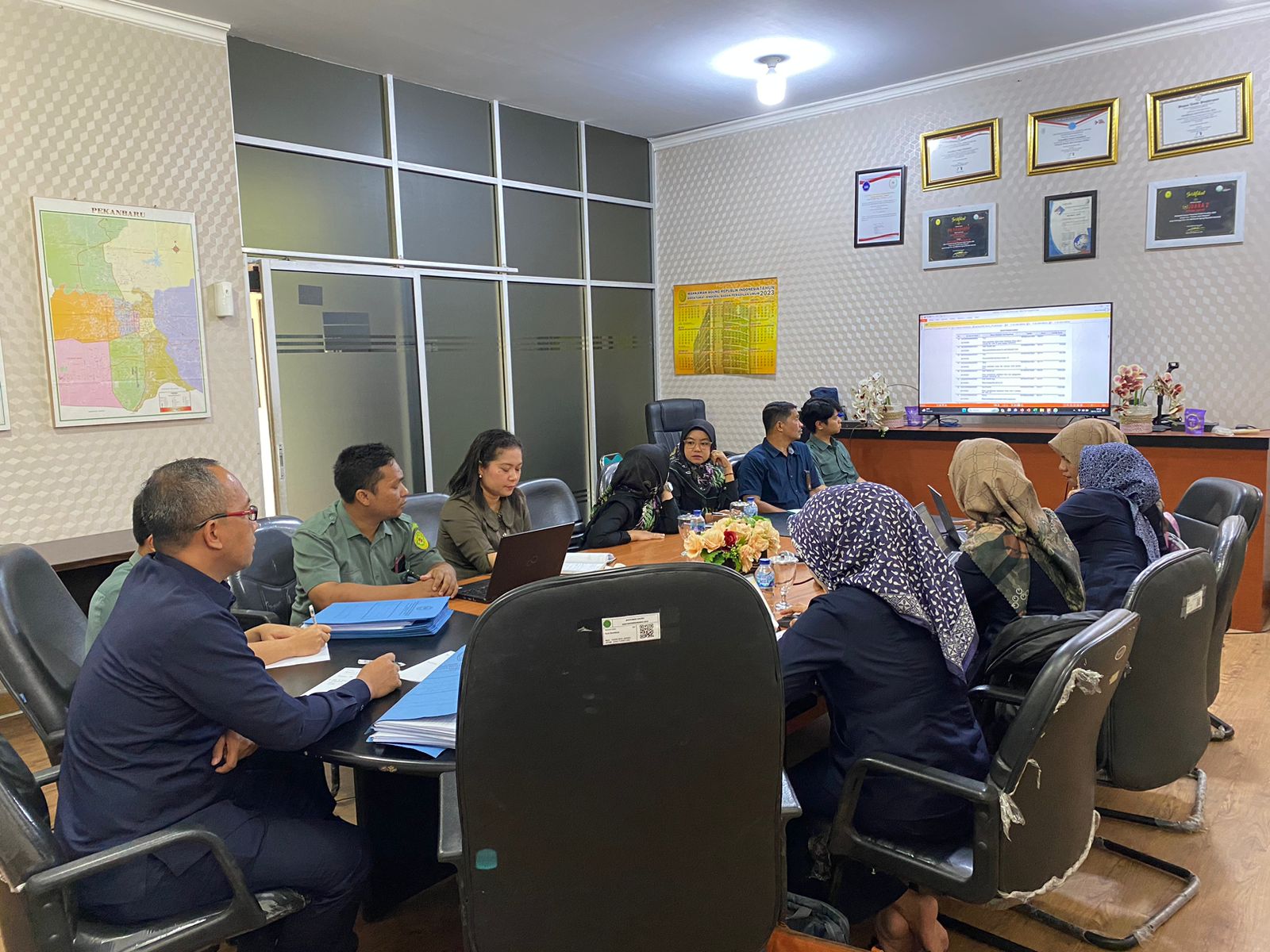 Pekanbaru, Selasa - 28 November 2023. Bertempat di Ruang Multimedia Pengadilan Negeri Pekanbaru dilaksanakan Penilaian Pengendalian Intern Atas Pelaporan Keuangan (PIPK) oleh Tim Penilai Pengendalian Intern Atas Pelaporan Keuangan (PIPK) Koordinator Wilayah Provinsi Riau Dipa 01 (Badan Urusan Administrasi) Tahun 2023 pada Pengadilan Negeri Pekanbaru.