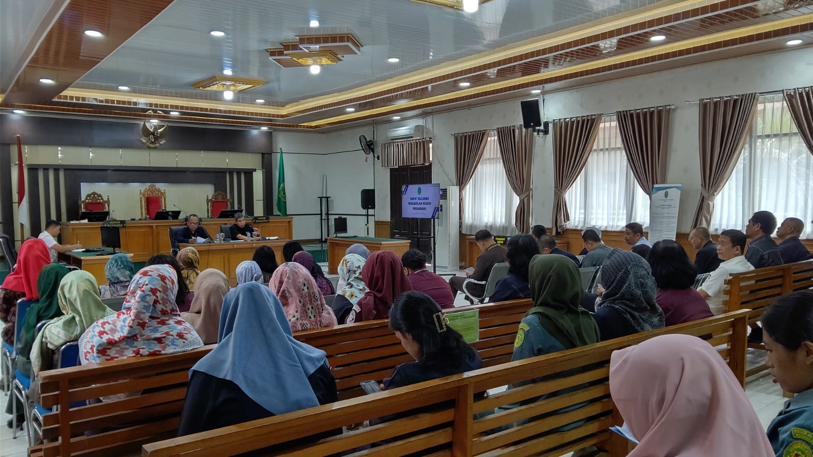 Pekanbaru – Rabu, 29 November 2023. Bertempat di Ruang Sidang Prof. R. Soebekti, SH dilaksanakan Rapat Bulanan dan Pembinaan. Rapat dan pembinaan tersebut dipimpin oleh Wakil Ketua Pengadilan Negeri Pekanbaru Bapak Mardison, SH dan dihadiri oleh Para Hakim, Hakim Ad Hoc Tipikor, Hakim Ad Hoc PHI, Panitera, Sekretaris, Pejabat Struktural, Pejabat Fungsional, Pelaksana, dan Pegawai Pemerintah Non Pegawai Negeri (PPNPN) pada Pengadilan Negeri Pekanbaru.
