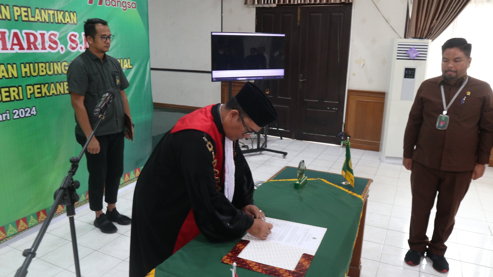 Pekanbaru - Rabu, 24 Januari 2024. Bertempat di Ruang Sidang Utama Pengadilan Negeri Pekanbaru dilaksanakan acara Pelantikan dan Pengambilan Sumpah Jabatan Hakim Ad Hoc Pengadilan Hubungan Industrial (PHI) an. Bapak Abdul Haris, SH. Â
