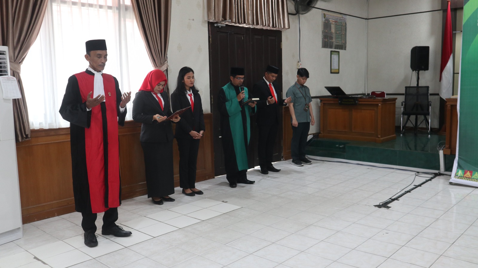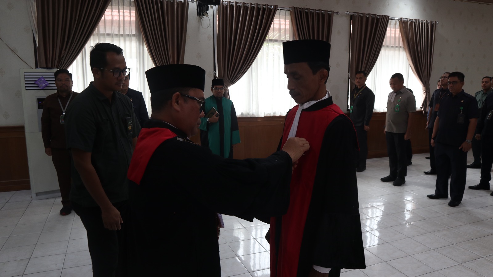 Pengambilan Sumpah dan Pelantikan dipimpin langsung oleh Ketua Pengadilan Negeri Pekanbaru Bapak Mashuri Effendie, S.H., M.H. Acara tersebut dihadiri oleh Wakil Ketua Bapak Mardison, S.H., Para Hakim, Pejabat Struktural dan Fungsional Pengadilan Negeri Pekanbaru.