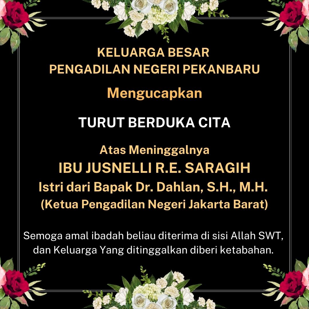 KELUARGA BESAR PENGADILAN NEGERI PEKANBARU Mengucapkan TURUT BERDUKA CITA Atas Meninggalnya IBU JUSNELLI R.E. SARAGIH