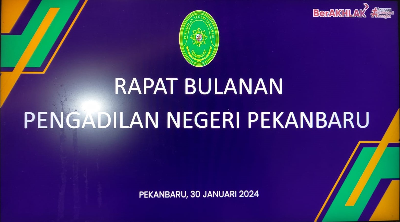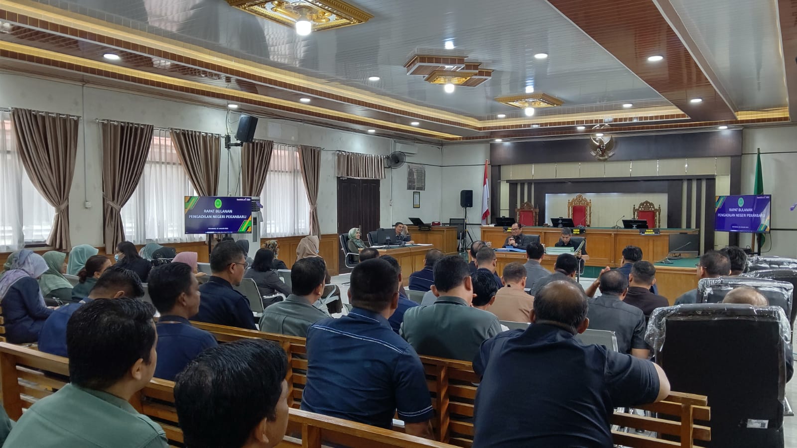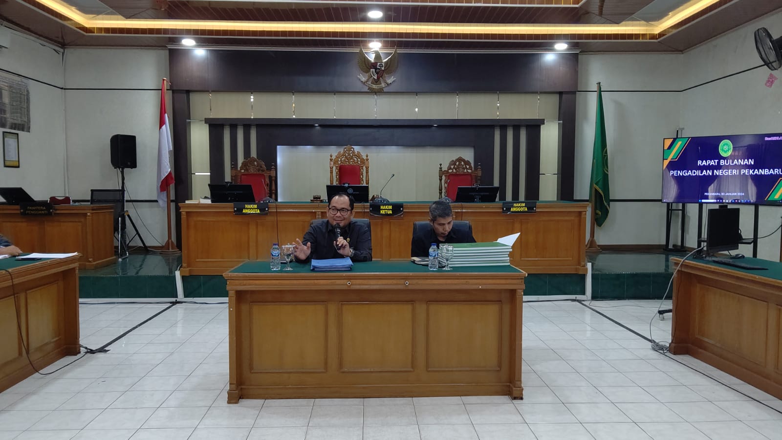 Pekanbaru – Selasa, 30 Januari 2024. Bertempat di Ruang Sidang Prof. R. Soebekti, SH dilaksanakan Rapat Bulanan dan Pembinaan. Rapat bulanan dan pembinaan tersebut dipimpin oleh Ketua Pengadilan Negeri Pekanbaru Bapak Mashuri Effendie, S.H., M.H. didampingi Wakil Ketua Pengadilan Negeri Pekanbaru Bapak Mardison, SH dan dihadiri oleh Para Hakim, Hakim Ad Hoc Tipikor, Hakim Ad Hoc PHI, Panitera, Sekretaris, Pejabat Struktural, Pejabat Fungsional, Pelaksana, dan Pegawai Pemerintah Non Pegawai Negeri (PPNPN) pada Pengadilan Negeri Pekanbaru.