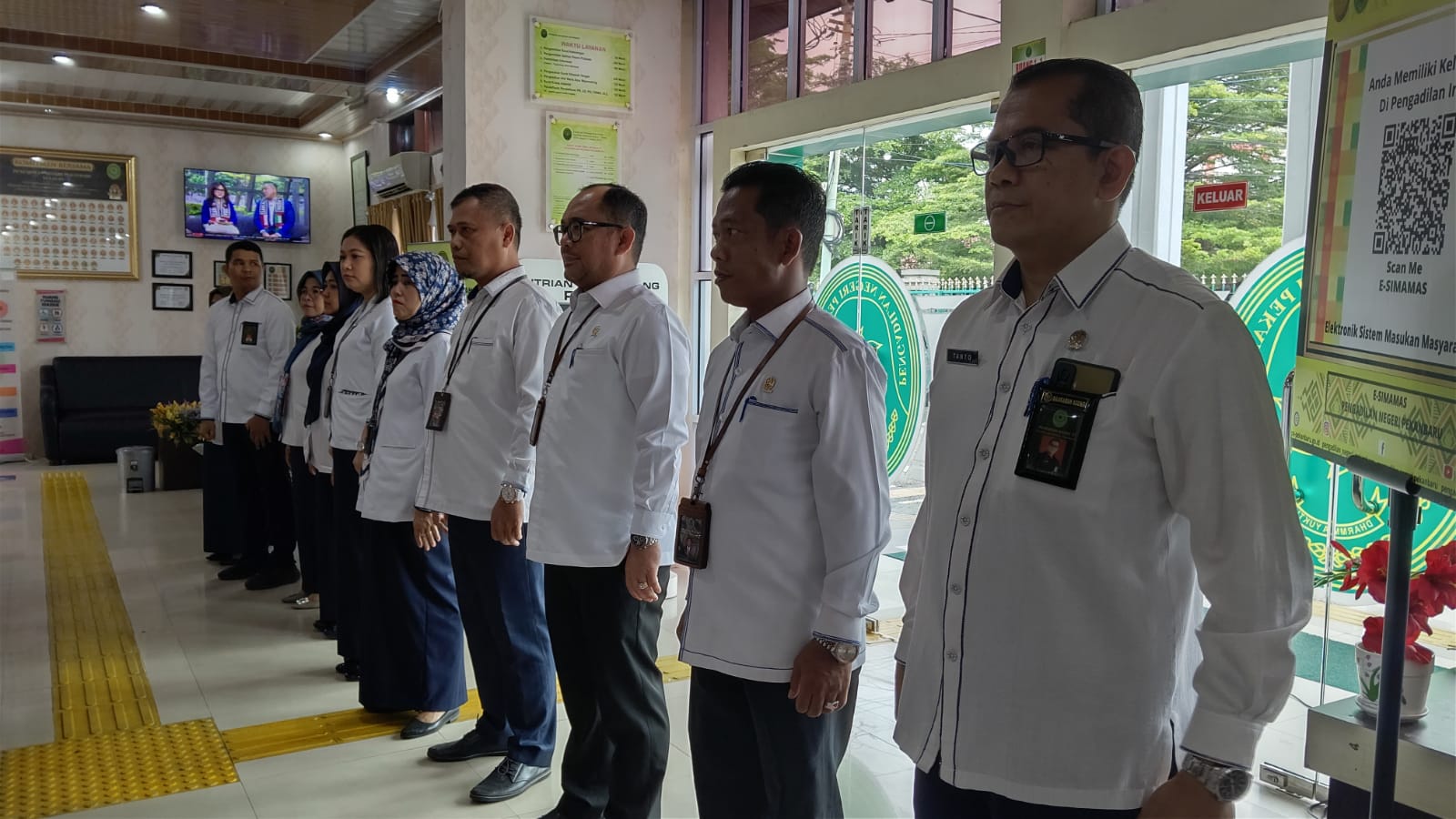 Pekanbaru - Senin, 26 Februari 2024. Bertempat di Ruang Pelayanan Terpadu Satu Pintu (PTSP) Pengadilan Negeri Pekanbaru telah dilaksanakan pembinaan PTSP oleh Ketua Pengadilan Negeri Pekanbaru Bapak Mashuri Effendie, S.H., M.H dan Pejabat Pengelola PTSP serta Penanggung jawab PTSP pada Pengadilan Negeri Pekanbaru. Dalam Pembinaan PTSP Pengadilan Negeri Pekanbaru tersebut, Ketua Pengadilan Negeri Pekanbaru Mengingatkan Kepada para petugas untuk memberikan pelayanan yang lebih baik, menguasai SOP untuk masing masing bagian dalam menjalankan tugasnya, serta menjaga dan menerapkan 5S dan 5R.Â