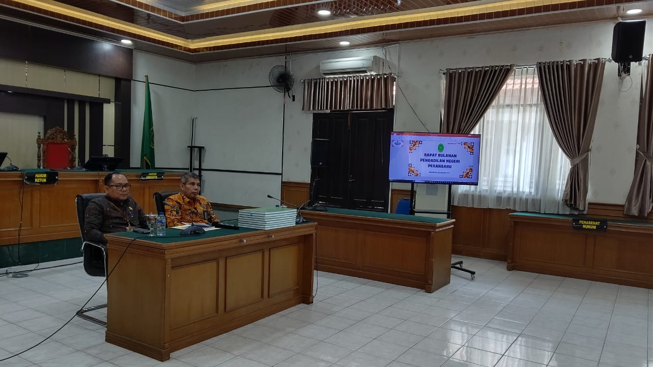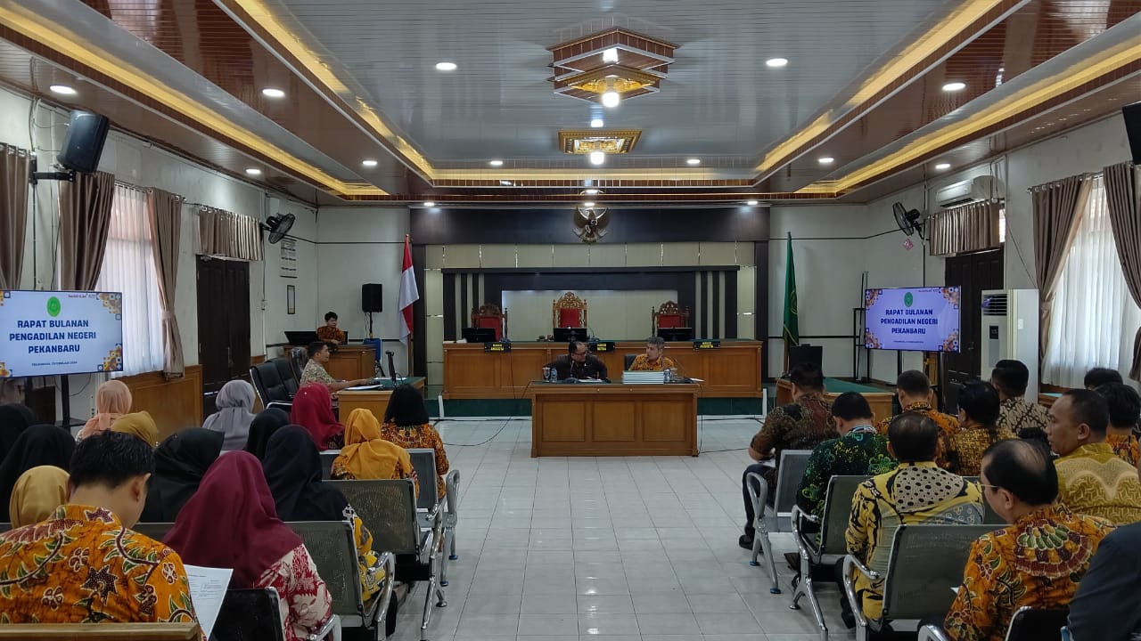 Pekanbaru – Kamis, 29 Februari 2024. Bertempat di Ruang Sidang Prof. R. Soebekti, SH dilaksanakan Rapat Bulanan dan Pembinaan. Rapat bulanan dan pembinaan tersebut dipimpin oleh Ketua Pengadilan Negeri Pekanbaru Bapak Mashuri Effendie, S.H., M.H. didampingi Wakil Ketua Pengadilan Negeri Pekanbaru Bapak Mardison, SH dan dihadiri oleh Para Hakim, Hakim Ad Hoc Tipikor, Hakim Ad Hoc PHI, Panitera, Sekretaris, Pejabat Struktural, Pejabat Fungsional, Pelaksana, dan Pegawai Pemerintah Non Pegawai Negeri (PPNPN) pada Pengadilan Negeri Pekanbaru.