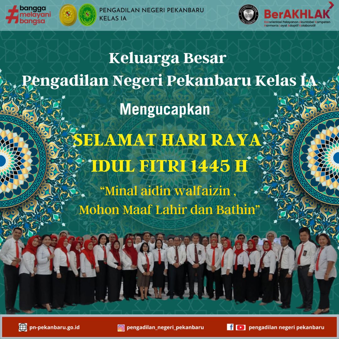 Keluarga Besar Pengadilan Negeri Pekanbaru mengucapakan SELAMAT HARI RAYA IDUL FITRI 1445 H