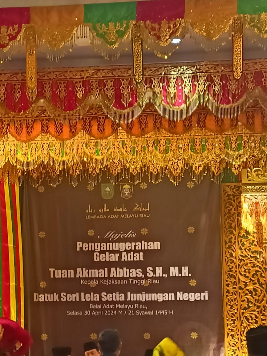 Pekanbaru – Selasa, 30 April 2024. Bertempat di Balai Adat Melayu Riau Jl. Diponegoro 39 Pekanbaru, Ketua Pengadilan Negeri Pekanbaru Bapak Mashuri Effendie, S.H., M.H. Menghadiri Acara Majelis Penganugerahan Gelar Adat Kepada Tuan Akmal Abbas, S. H., M.H. dengan gelar Datuk Seri Lela Setia Junjungan Negeri.
