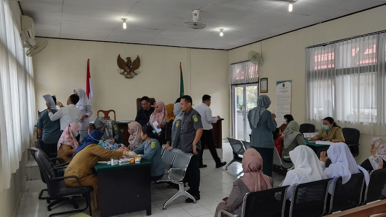 Pekanbaru – Selasa, 30 April 2024. Bertempat di Ruang Sidang Pengadilan Negeri Pekanbaru dilaksanakan Kegiatan Skrining PTM (Penyakit Tidak Menular) Pada Pengadilan Negeri Pekanbaru. Kegiatan Skrining PTM tersebut diadakan oleh Puskesmas Melur Pekanbaru dalam rangka meningkatkan derajat kesehatan masyarakat di wilayah kerja Puskesmas Melur melalui Program POSBINDU PTM dengan tujuan memantau penyakit kronis dan menurunkan angka kejadian penyakit tidak menular (PTM). Pengecekan Kesehatan yang dilakukan oleh petugas Puskesmas Melur meliputi : Pengecekan faktor resiko, Pengecekan Tekanan Darah, Pengukuran Tinggi Badan dan Berat Badan, Lingkar Perut, Pengecekan Gula darah serta Konsultasi kesehatan dengan dokter dan pemberian obat bagi peserta yang beresiko.Â