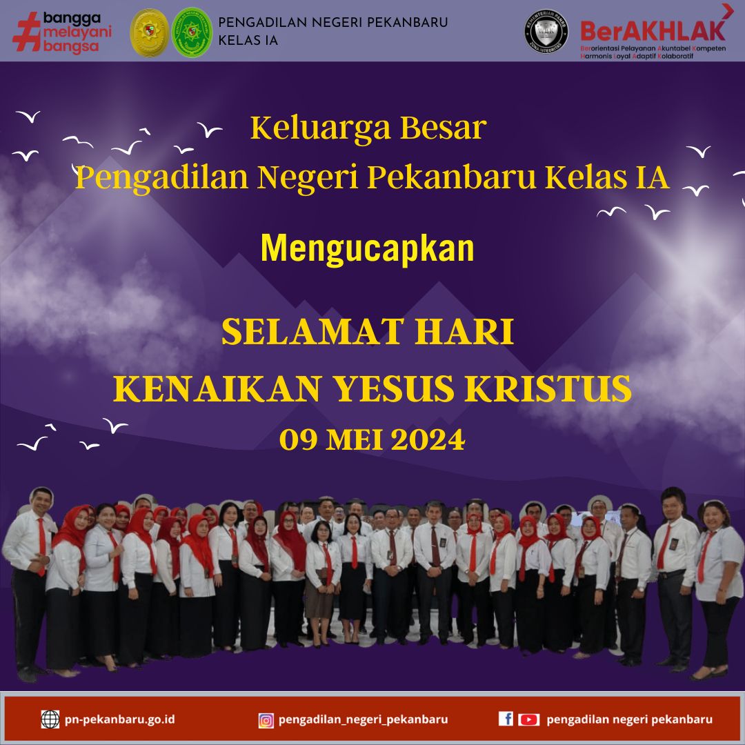 Keluarga Besar Pengadilan Negeri Pekanbaru Kelas IA Mengucapkan SELAMAT HARI KENAIKAN YESUS KRISTUS
