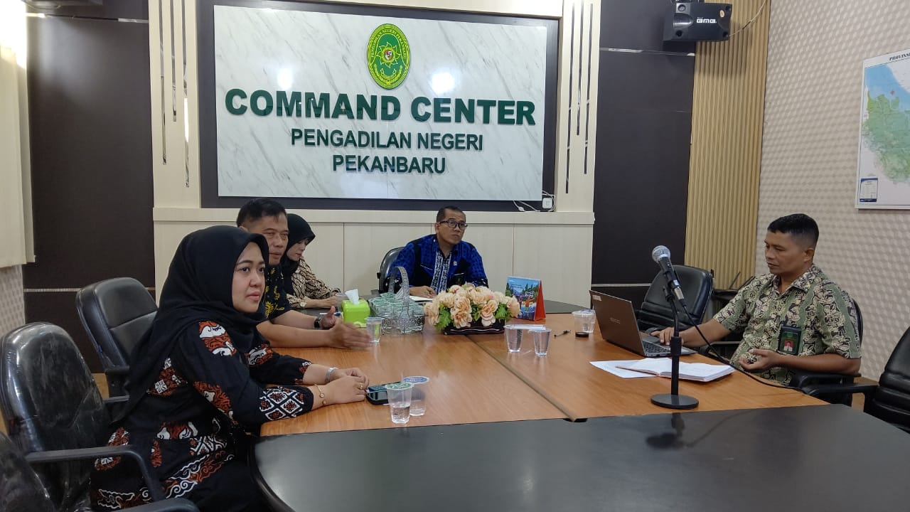 Pekanbaru, Kamis - 16 Mei 2024. Bertempat di Ruang Command Center Pengadilan Negeri Pekanbaru, Panitera Pengadilan Negeri Pekanbaru Bapak Sutanto, S.H., M.H., Panitera Muda dan Kasub Bagian Kepegawaian dan Organisasi Tata Laksana Pengadilan Negeri Pekanbaru mengikuti Sosialisasi Layanan Administrasi Kepegawaian Kepaniteraan oleh Direktorat Jenderal Badan Peradilan Umum Secara Daring.Â
