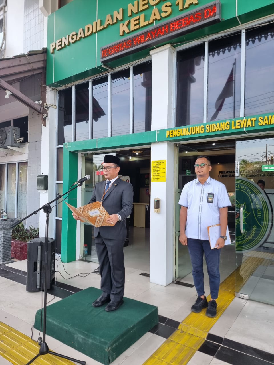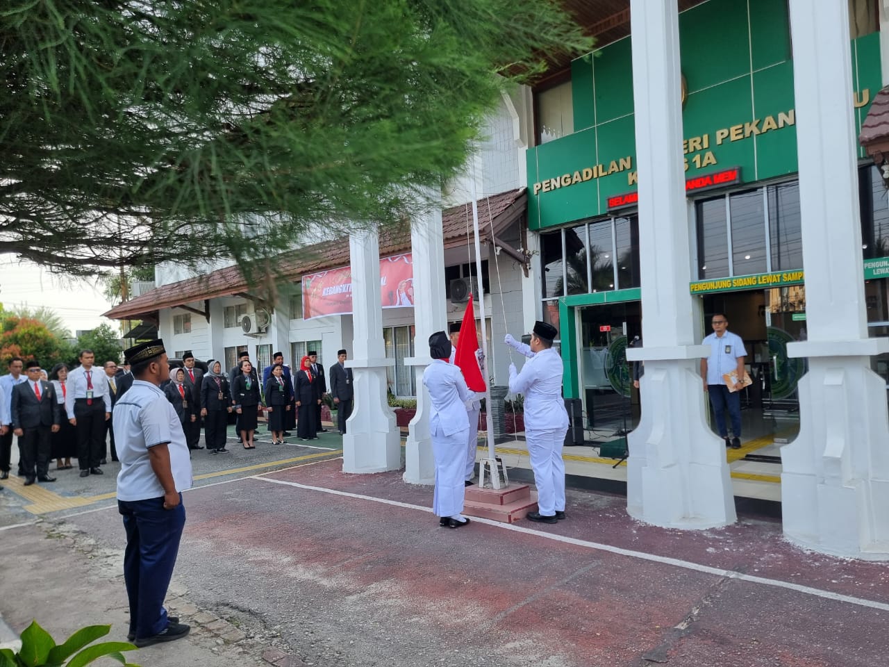 Pekanbaru – Senin, 20 Mei 2024. Upacara memperingati Hari Kebangkitan Nasional Ke- 116 dilaksanakan di halaman Kantor Pengadilan Negeri Pekanbaru. Upacara tersebut dipimpin oleh Ketua Pengadilan Negeri Pekanbaru Bapak Mashuri Effendie, S.H., M.H. selaku Pembina Upacara. Turut serta dalam upacara tersebut Wakil Ketua Pengadilan Negeri Pekanbaru Bapak Mardison, SH., para Hakim, Hakim Adhoc, Pejabat Struktural dan Fungsional, seluruh Karyawan/ti dan Pegawai Pemerintah Non Pegawai Negeri (PPNPN) pada Pengadilan Negeri Pekanbaru.Â