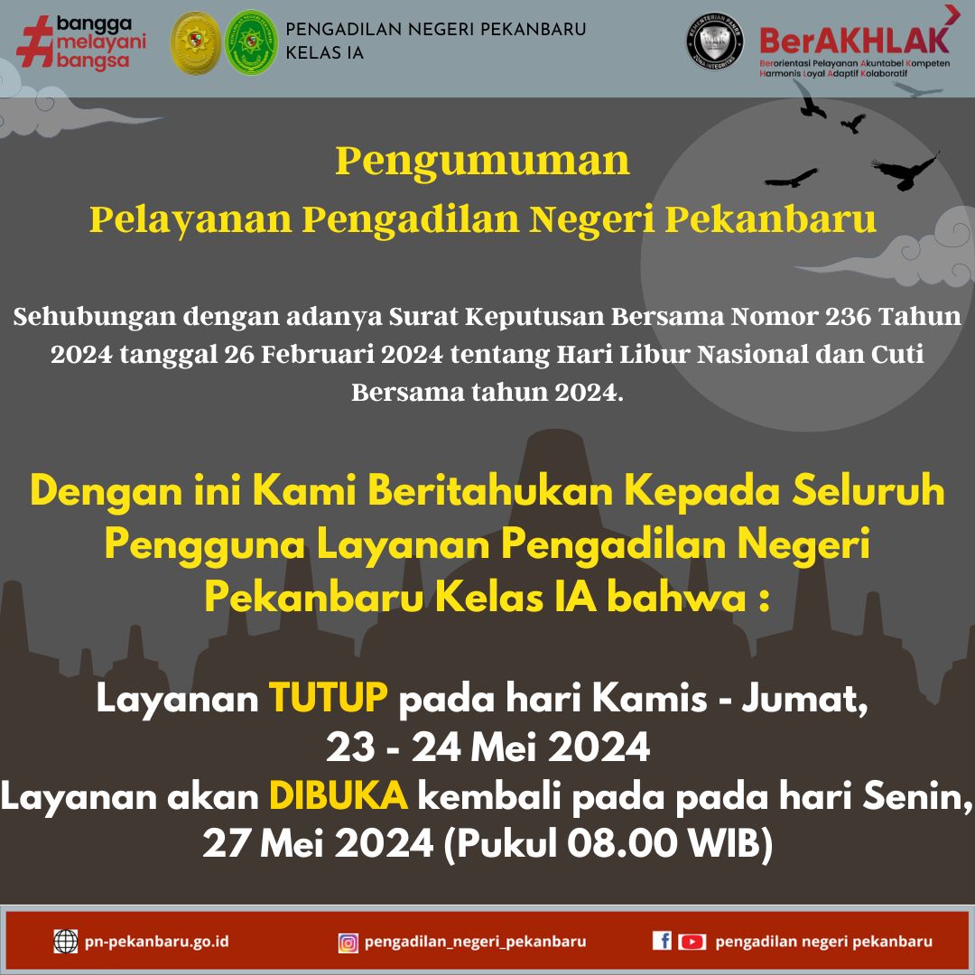 Layanan TUTUP pada hari Kamis - Jumat, 23 - 24 Mei 2024
