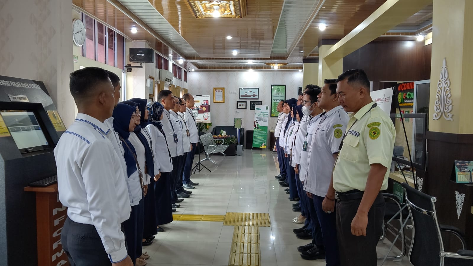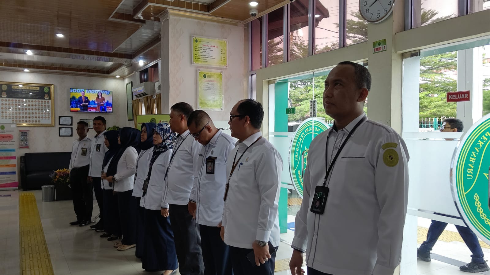Pekanbaru - Senin, 03 Juni 2024. Bertempat di Ruang Pelayanan Terpadu Satu Pintu (PTSP) Pengadilan Negeri Pekanbaru telah dilaksanakan pembinaan PTSP oleh Ketua Pengadilan Negeri Pekanbaru Bapak Mashuri Effendie, S.H., M.H dan Pejabat Pengelola PTSP serta Penanggung jawab PTSP pada Pengadilan Negeri Pekanbaru. Dalam Pembinaan PTSP Pengadilan Negeri Pekanbaru tersebut, Ketua Pengadilan Negeri Pekanbaru Mengingatkan Kepada para petugas untuk memberikan pelayanan yang lebih baik, menguasai SOP untuk masing masing bagian dalam menjalankan tugasnya, serta menjaga dan menerapkan 5S dan 5R.Â