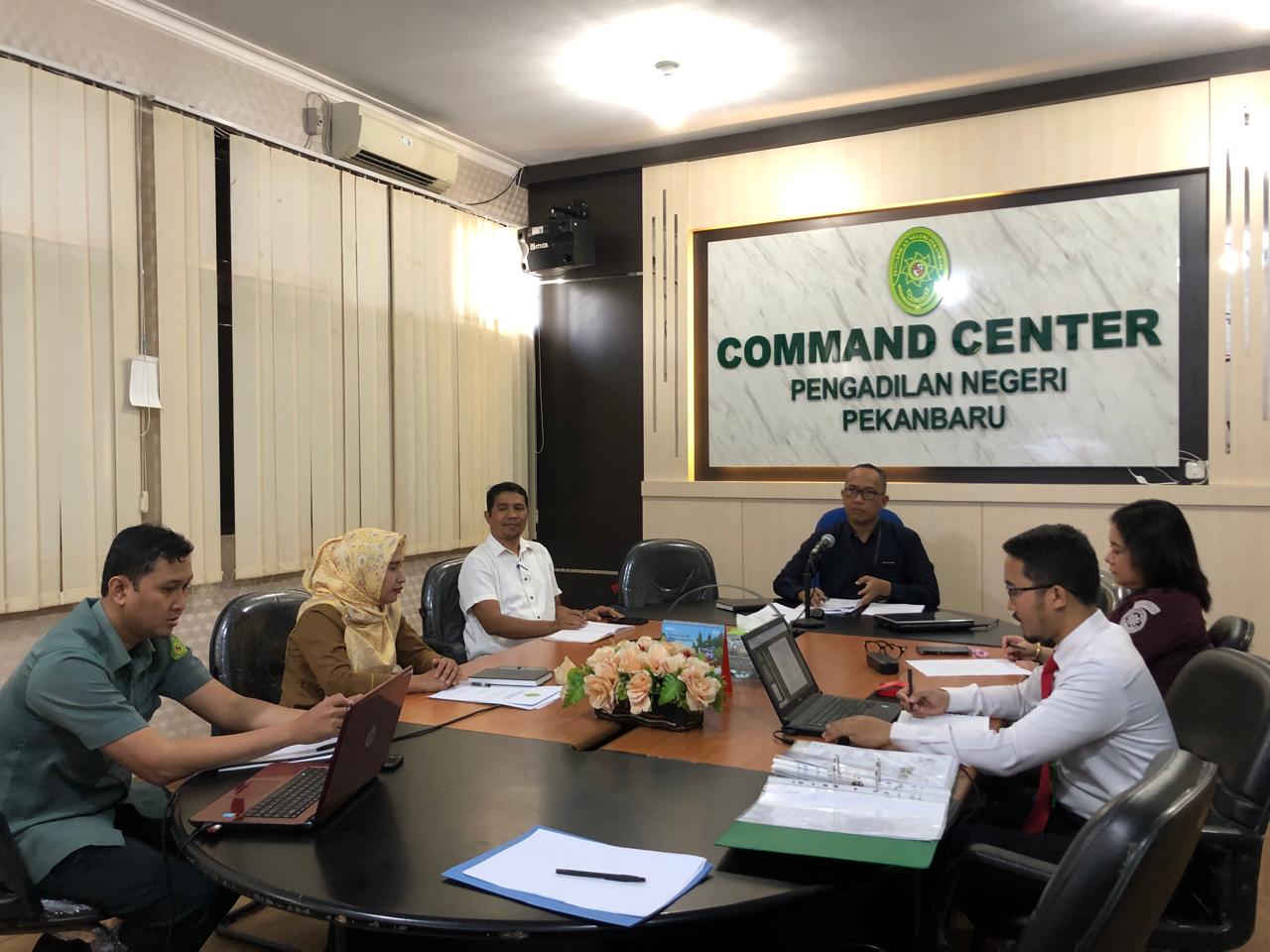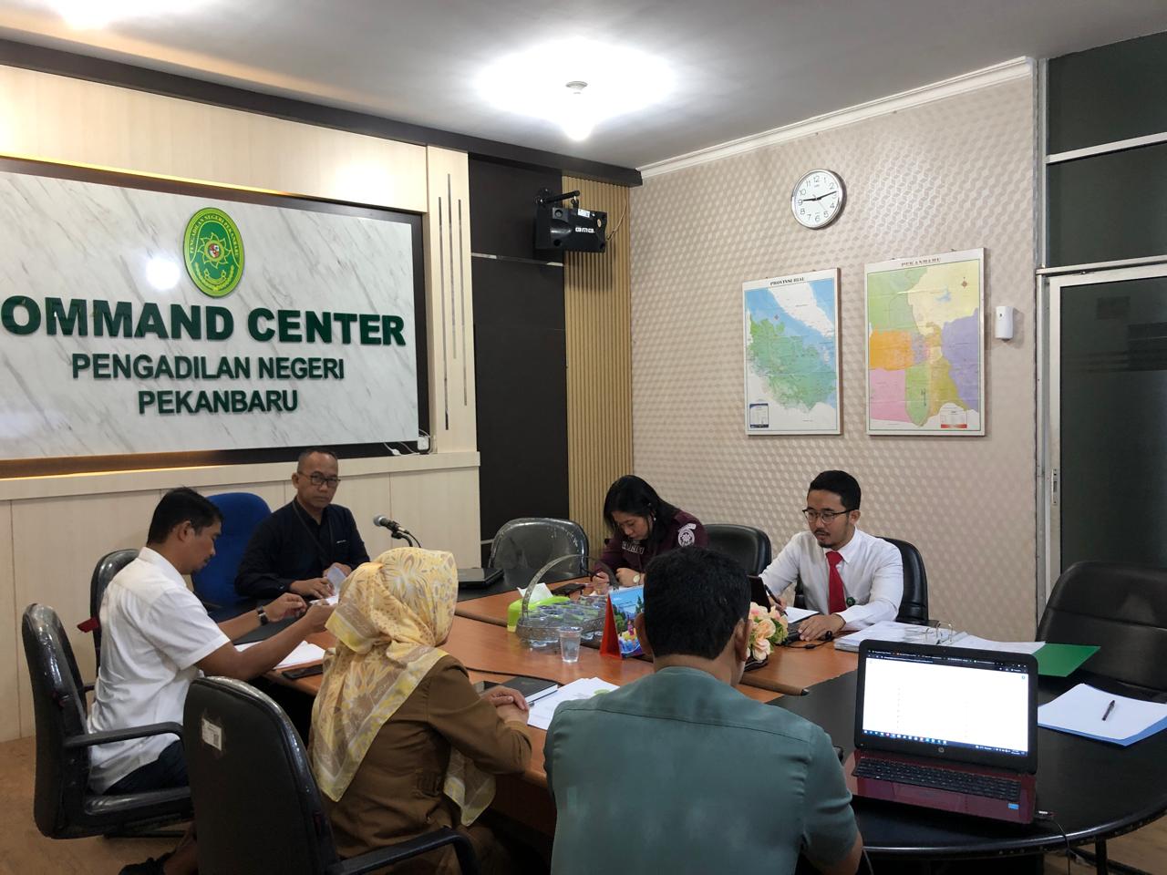 Pekanbaru – Rabu, 26 Juni 2024. Bertempat di Ruang Command Center Pengadilan Negeri Pekanbaru, Sekretaris Pengadilan Negeri Pekanbaru Bapak Erry Mardianto, ST., SH, Kasub Bagian Umum dan Keuangan, Kasub Bagian Perencanaan Teknologi Informasi dan Pelaporan serta Staff Bagian Umum dan Keuangan pada Pengadilan Negeri mengikuti kegiatan Persiapan Penyusunan usulan Rencana Kebutuhan Barang Milik Negara (RKBMN) TA. 2026 oleh Badan Urusan Administrasi MA RI secara Daring.