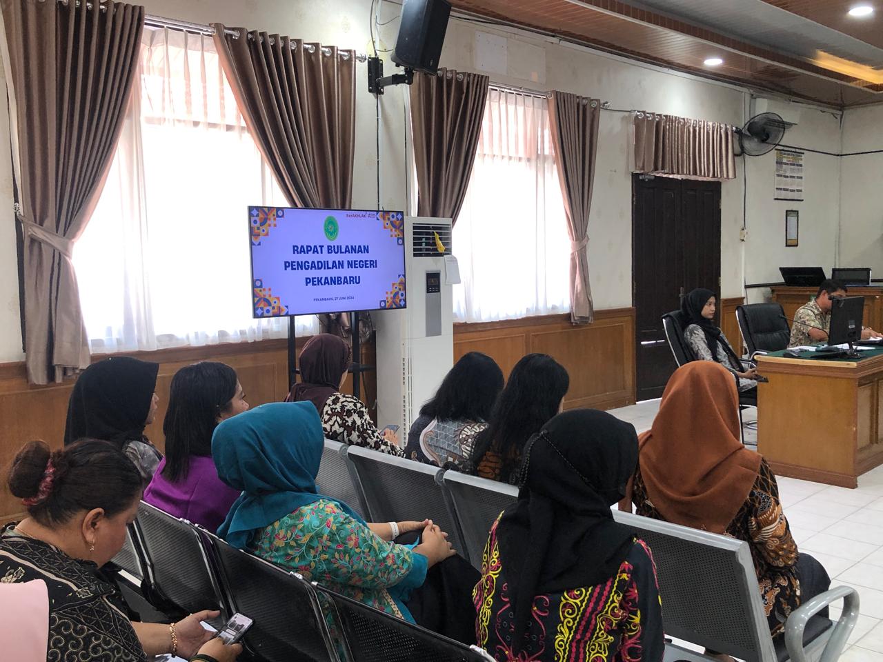Pekanbaru – Kamis, 27 Juni 2024. Bertempat di Ruang Sidang Prof. R. Soebekti, SH dilaksanakan Rapat Bulanan dan Pembinaan. Rapat bulanan dan pembinaan tersebut dipimpin oleh Wakil Ketua Pengadilan Negeri Pekanbaru Bapak Mardison, SH dan dihadiri oleh Hakim Karier, Hakim Ad Hoc Tipikor, Hakim Ad Hoc PHI, Panitera, Sekretaris, Pejabat Struktural, Pejabat Fungsional, Pelaksana, dan Pegawai Pemerintah Non Pegawai Negeri (PPNPN) pada Pengadilan Negeri Pekanbaru.