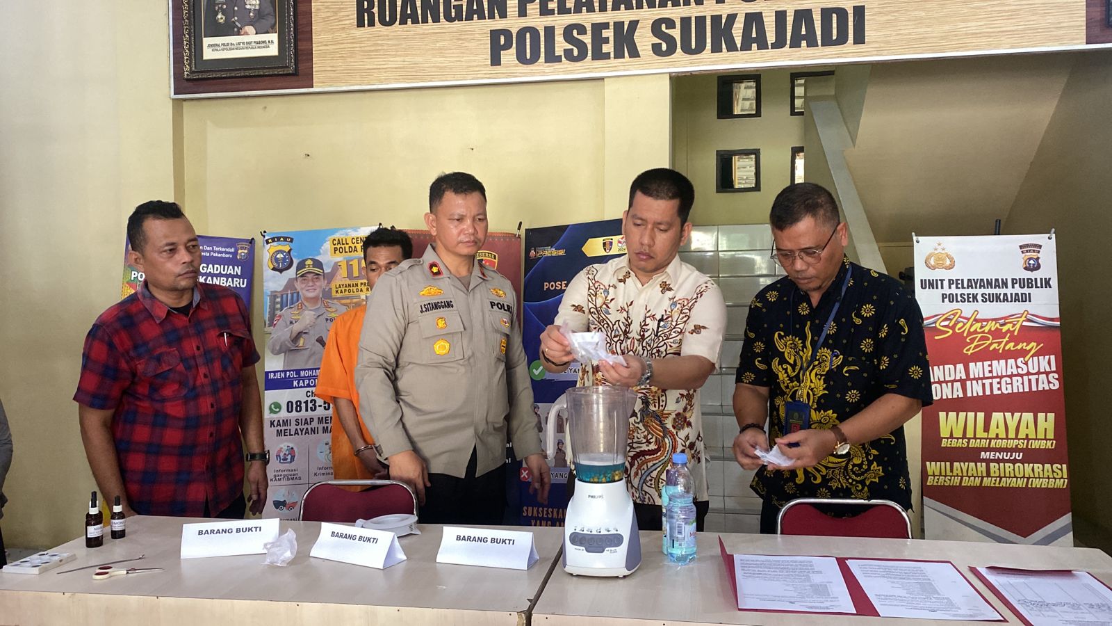 Panitera Muda Pidana Pengadilan Negeri Pekanbaru Bapak Dedy Tias Dianto, S.H. Mewakili Ketua Pengadilan Negeri Pekanbaru Menghadiri Undangan Pemusnahan Barang Bukti di Polsek Sukajadi