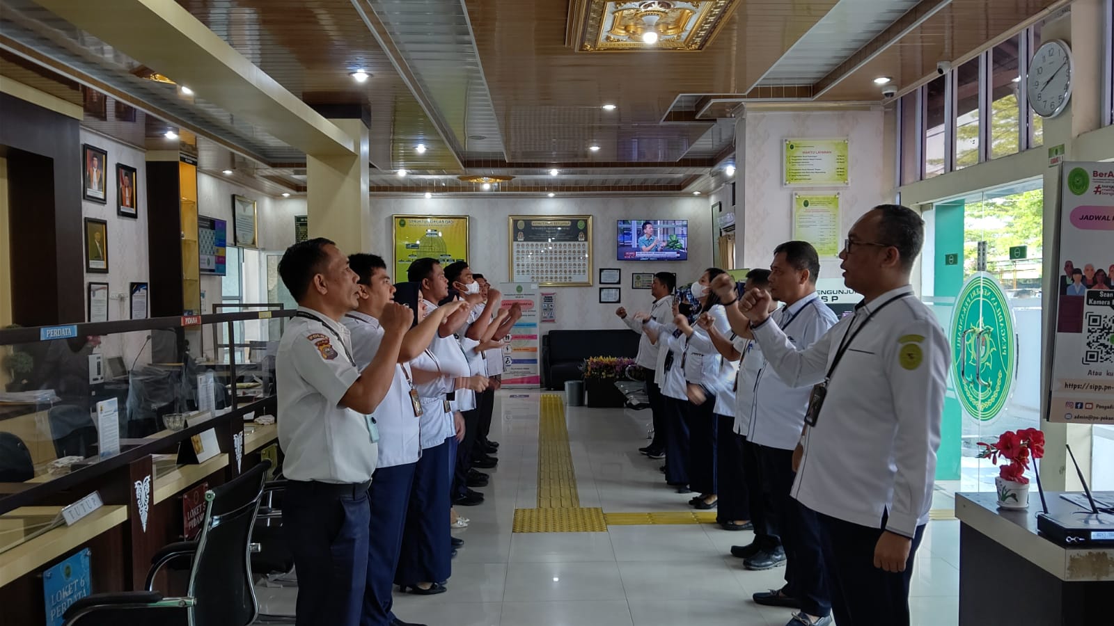 Pekanbaru - Senin, 15 Juli 2024. Bertempat di Ruang Pelayanan Terpadu Satu Pintu (PTSP) Pengadilan Negeri Pekanbaru telah dilaksanakan pembinaan PTSP oleh Pejabat Pengelola PTSP, Penanggung jawab PTSP kepada Petugas PTSP Pengadilan Negeri Pekanbaru. Dalam Pembinaan PTSP tersebut, Pejabat Pengelola PTSP, Penanggung jawab PTSP Pengadilan Negeri Pekanbaru mengingatkan kepada para petugas untuk memberikan pelayanan terbaik kepada masyarakat sesuai SOP serta menerapkan 5S dan 5R.