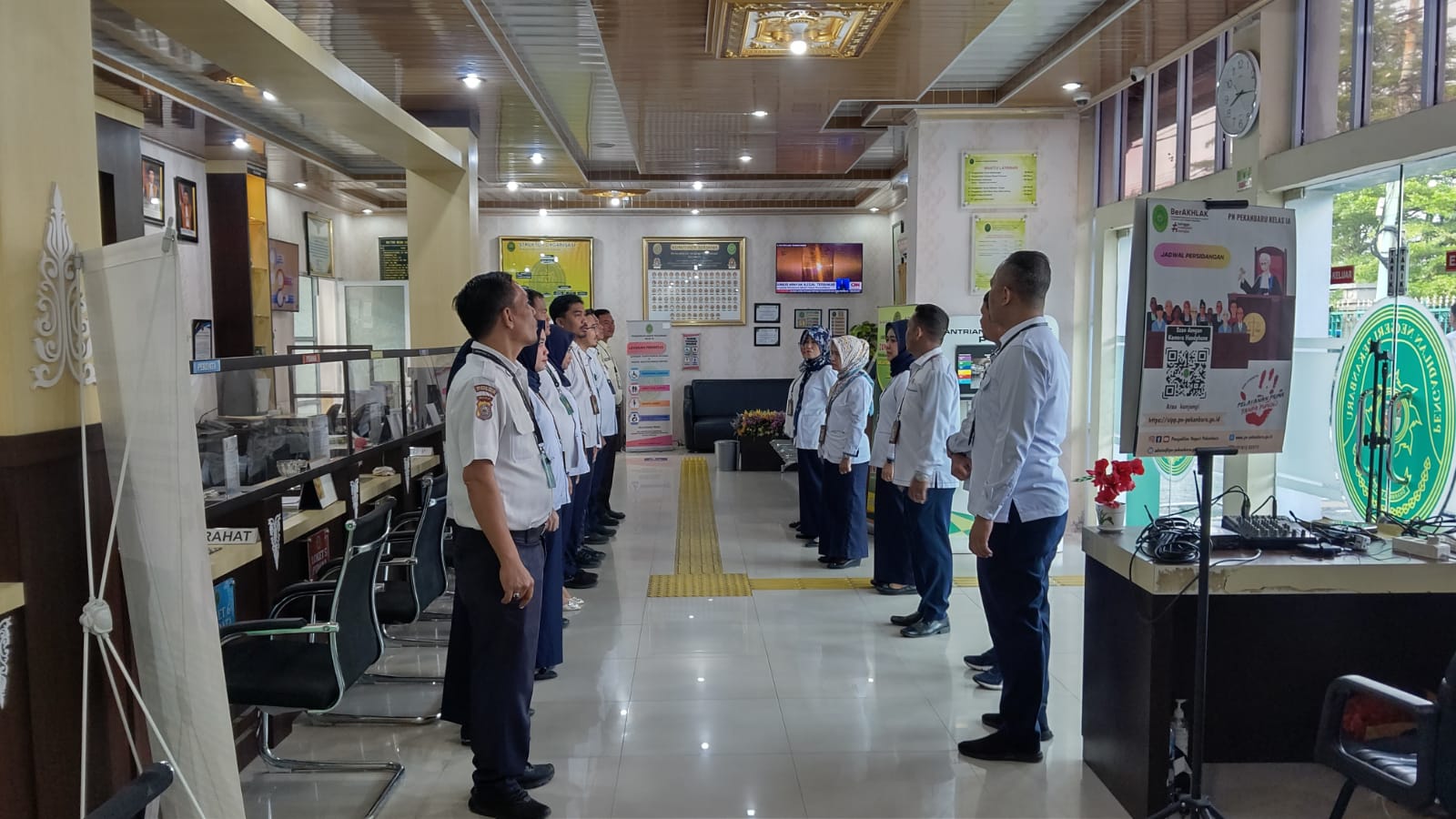 Pekanbaru - Senin, 22 Juli 2024. Bertempat di Ruang Pelayanan Terpadu Satu Pintu (PTSP) Pengadilan Negeri Pekanbaru telah dilaksanakan pembinaan PTSP oleh Pejabat Pengelola PTSP, Penanggung jawab PTSP kepada Petugas PTSP Pengadilan Negeri Pekanbaru. Dalam Pembinaan PTSP tersebut, Pejabat Pengelola PTSP, Penanggung jawab PTSP Pengadilan Negeri Pekanbaru mengingatkan kepada para petugas untuk memberikan pelayanan terbaik kepada masyarakat sesuai SOP serta menerapkan 5S dan 5R.