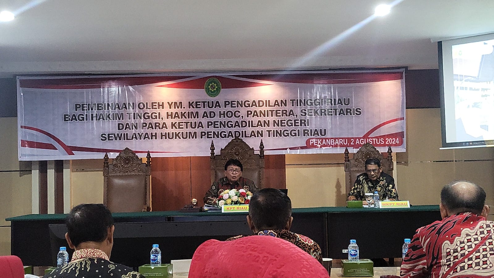 Pekanbaru, Jum’at - 02 Agustus 2024. Bertempat di Ruang Sidang Utama Pengadilan Tinggi Riau, Ketua Pengadilan Negeri Pekanbaru Bapak Mashuri Effendie, S.H., M.H. mengikuti kegiatan Pembinaan oleh Pimpinan Pengadilan Tinggi Riau Bagi Hakim Tinggi, Hakim Ad Hoc, Panitera, Sekretaris, dan Para Ketua Pengadilan Negeri Sewilayah Hukum Pengadilan Tinggi Riau.