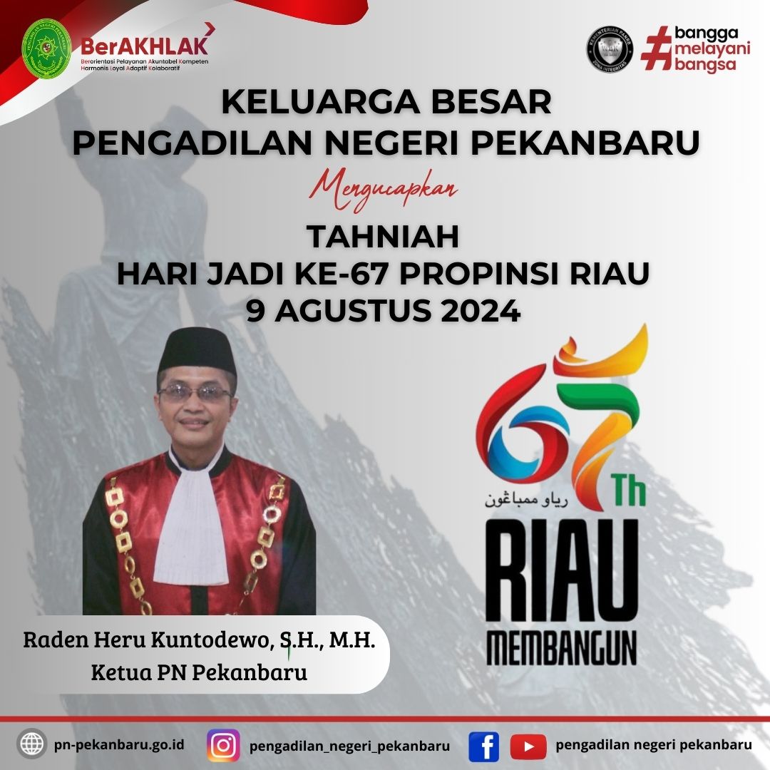 TAHNIAH HARI JADI KE – 67 PROVINSI RIAU 09 AGUSTUS 2024