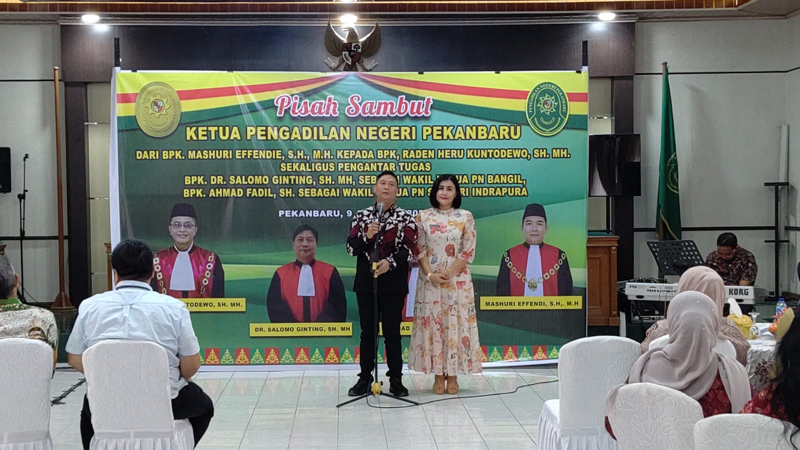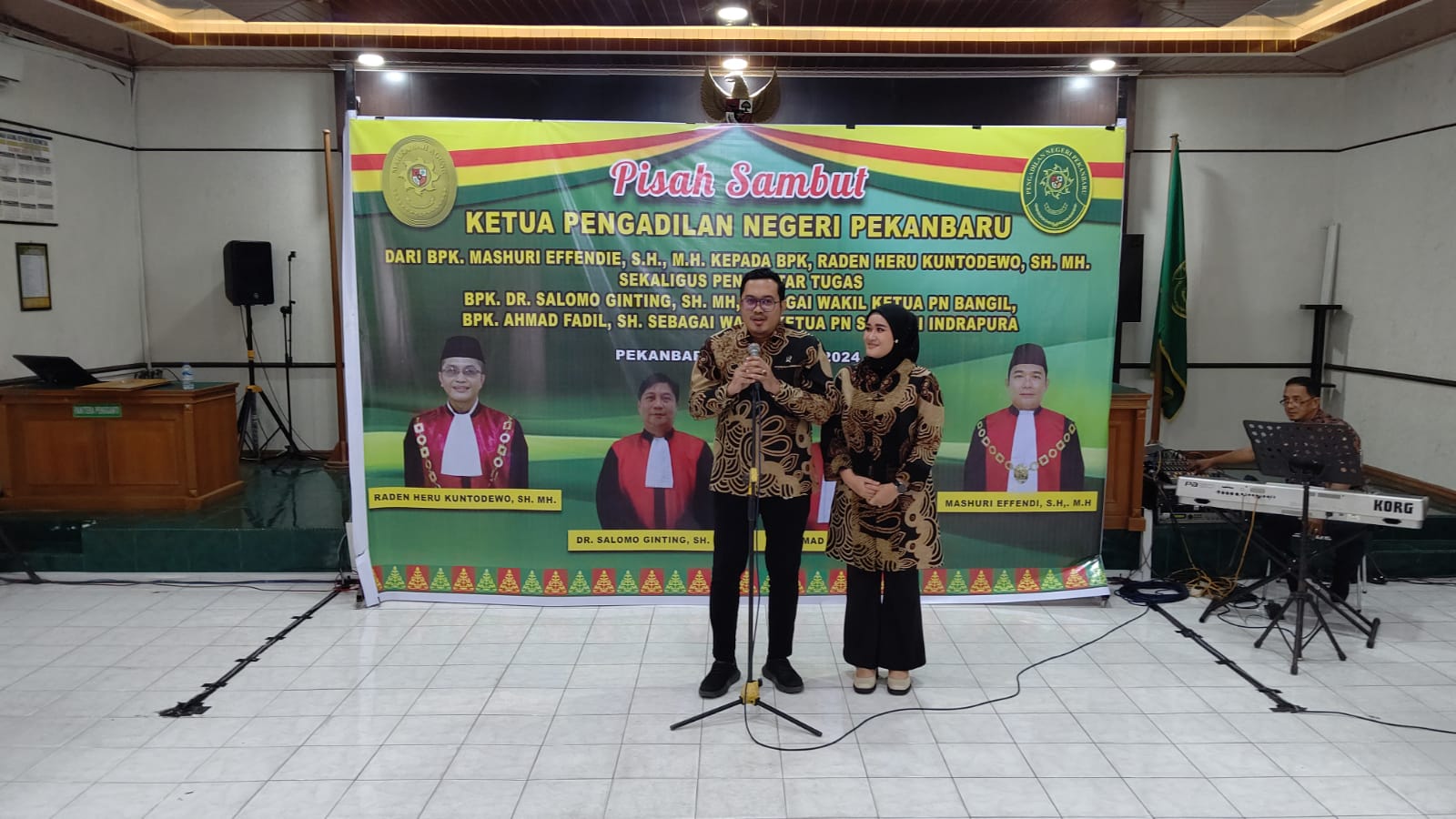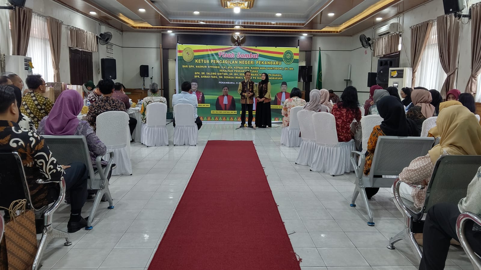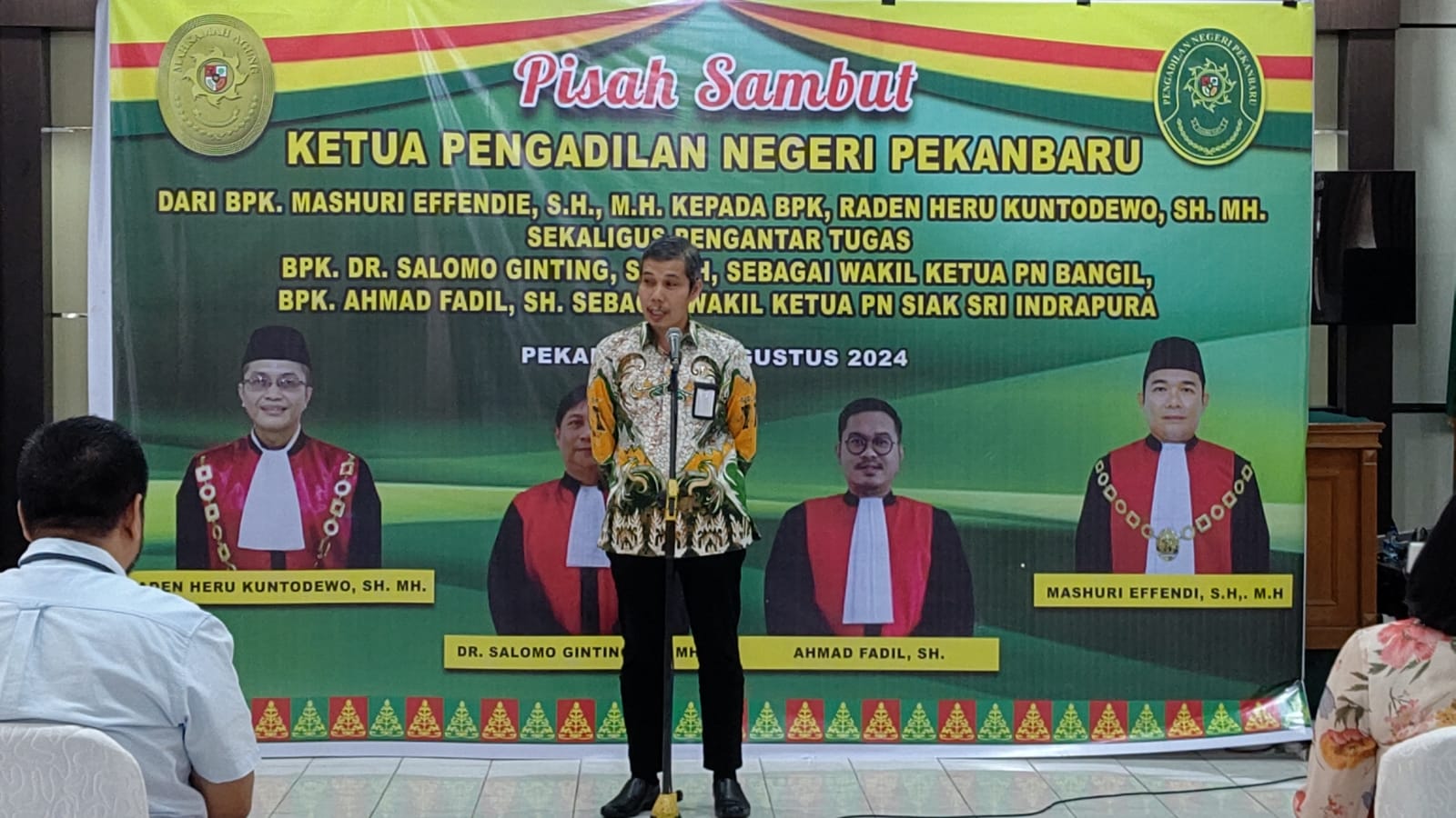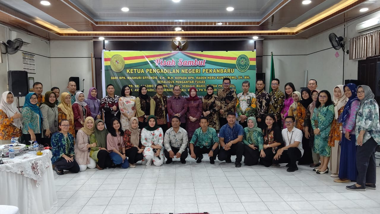 Pekanbaru – admin, Bertempat di Ruang Sidang Pengadilan Negeri Pekanbaru, pada hari Jumat, tanggal 09 Agustus 2024 dilaksanakan acara Pisah Sambut Ketua Pengadilan Negeri Pekanbaru Kelas IA dari Bapak Mashuri Effendie, S.H., M.H. Kepada Bapak Raden Heru Kuntodewo, S.H., M.H. Sekaligus pengantar tugas Bapak Dr. Salomo Ginting SH, MH dan Bapak Ahmad Fadil, SH. Acara Pisah Sambut dan pengantar tersebut dihadiri oleh Keluarga besar Pengadilan Negeri Pekanbaru.Â
