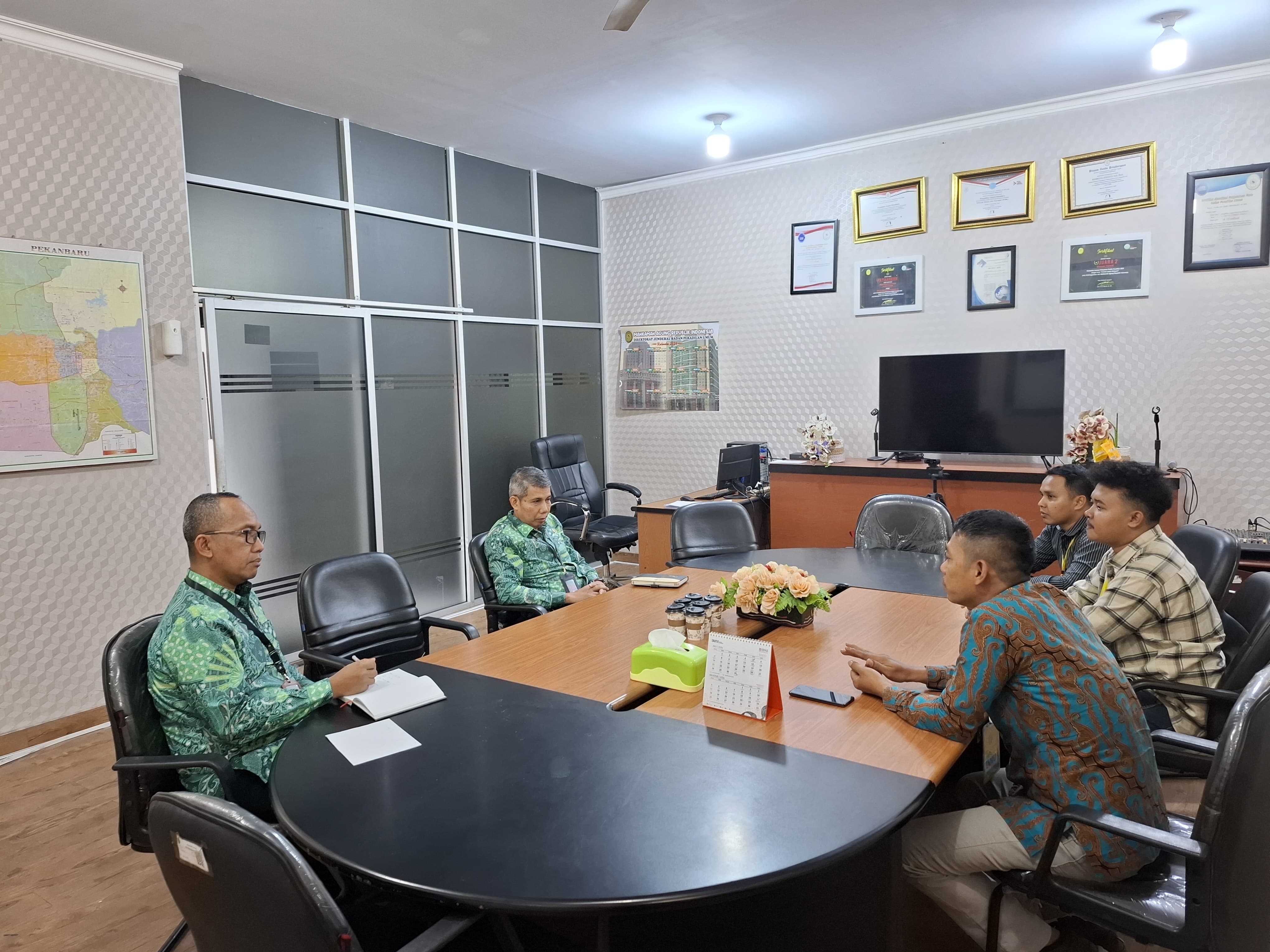 Sosialisasi disampaikan Kepada Wakil Ketua Pengadilan Negeri Pekanbaru Bapak Mardison, S.H., dan Sekretaris Pengadilan Negeri Pekanbaru Bapak Erry Mardianto, S.T., S.H.
