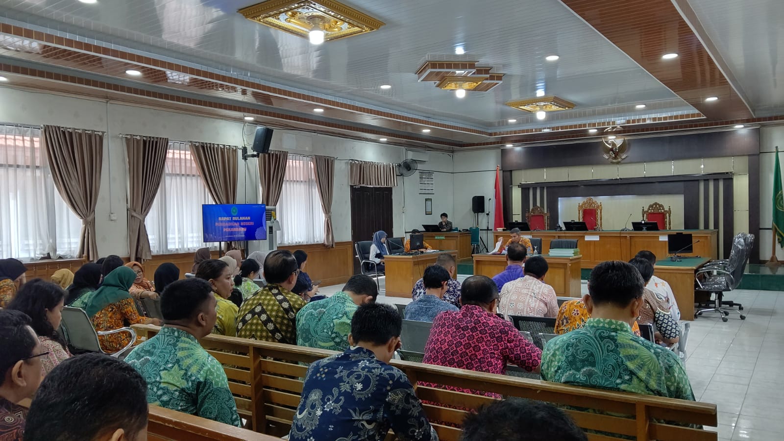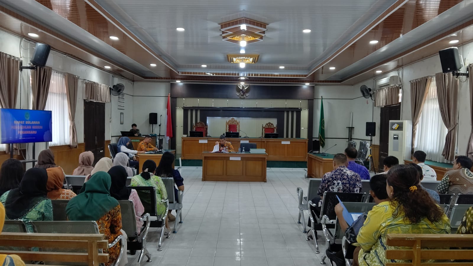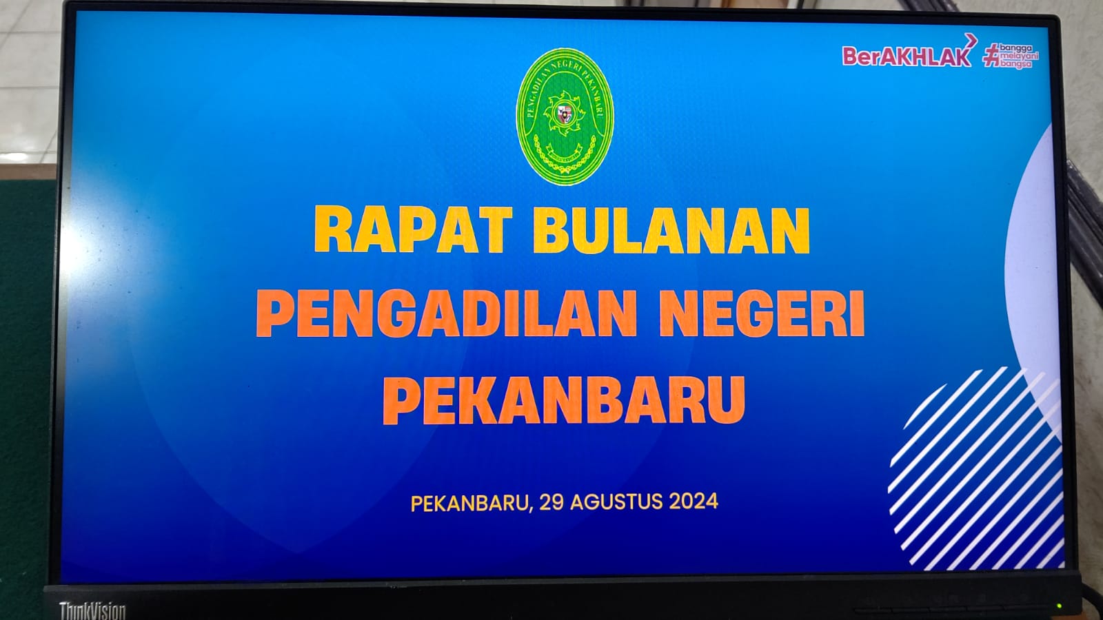 Pekanbaru – Kamis, 29 Agustus 2024. Bertempat di Ruang Sidang Prof. R. Soebekti, SH dilaksanakan Rapat Bulanan dan Pembinaan. Rapat bulanan dan pembinaan tersebut dipimpin oleh Wakil Ketua Pengadilan Negeri Pekanbaru Bapak Mardison, SH dan dihadiri oleh Hakim Karier, Hakim Ad Hoc Tipikor, Hakim Ad Hoc PHI, Panitera, Sekretaris, Pejabat Struktural, Pejabat Fungsional, Pelaksana, dan Pegawai Pemerintah Non Pegawai Negeri (PPNPN) pada Pengadilan Negeri Pekanbaru. Agenda Rapat Bulanan adalah evaluasi kinerja kepaniteraan dan kesekretariatan, penyelesaian perkara, disiplin kerja, capaian kinerja dan pembinaan oleh Wakil Ketua Pengadilan Negeri Pekanbaru.