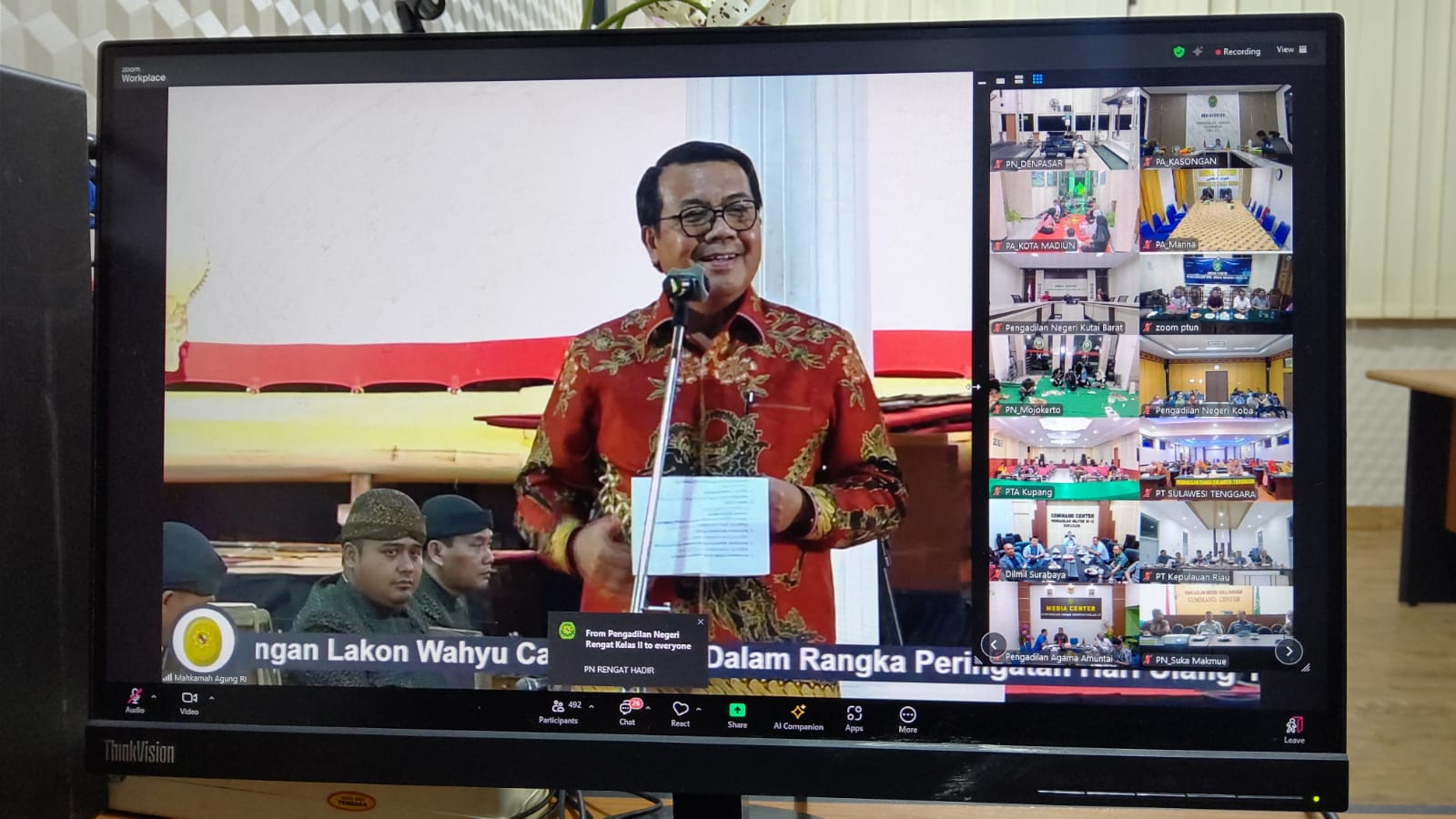 Pekanbaru – Sabtu, 31 Agustus 2024. Bertempat di Command Center Pengadilan Negeri Pekanbaru, Wakil Ketua Pengadilan Negeri Pekanbaru Bapak Mardison, S.H., Hakim, Panitera, Sekretaris, Pejabat Struktural dan Fungsional, Pelaksana, serta Pegawai Pemerintah Non Pegawai Negeri (PPNPN) pada Pengadilan Negeri Pekanbaru mengikuti Pagelaran Wayang Kulit dalam Rangka Memperingati HUT Ke-79 Mahkamah Agung RI secara daring.Â