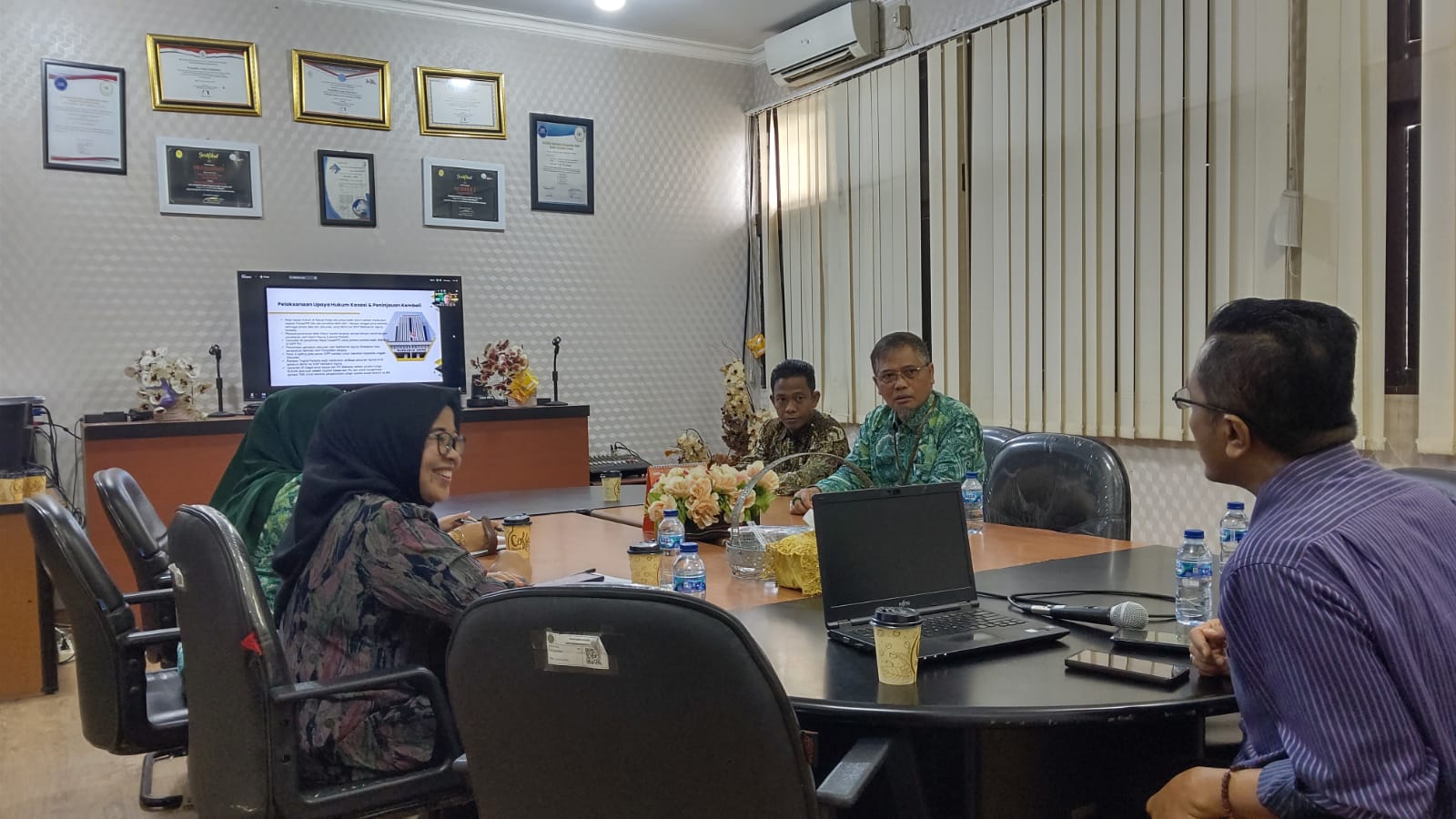 Pekanbaru – Kamis, 03 Oktober 2024. Bertempat di Ruang Command Center, Ketua Pengadilan Negeri Pekanbaru Bapak Raden Heru Kuntodewo, S.H., M.H., dan dihadiri oleh Hakim, Panitera, Panitera Pengganti, Panmud Perdata, Pelaksana Meja Ecourt dan Pelaksana Meja 3 pada Pengadilan Negeri Pekanbaru mengikuti Kegiatan Sosialisasi Pembaruan Aplikasi SIPP versi 5.6.0 dan eCourt versi 6.0.0 yang diadakan oleh Mahkamah Agung RI secara Daring.