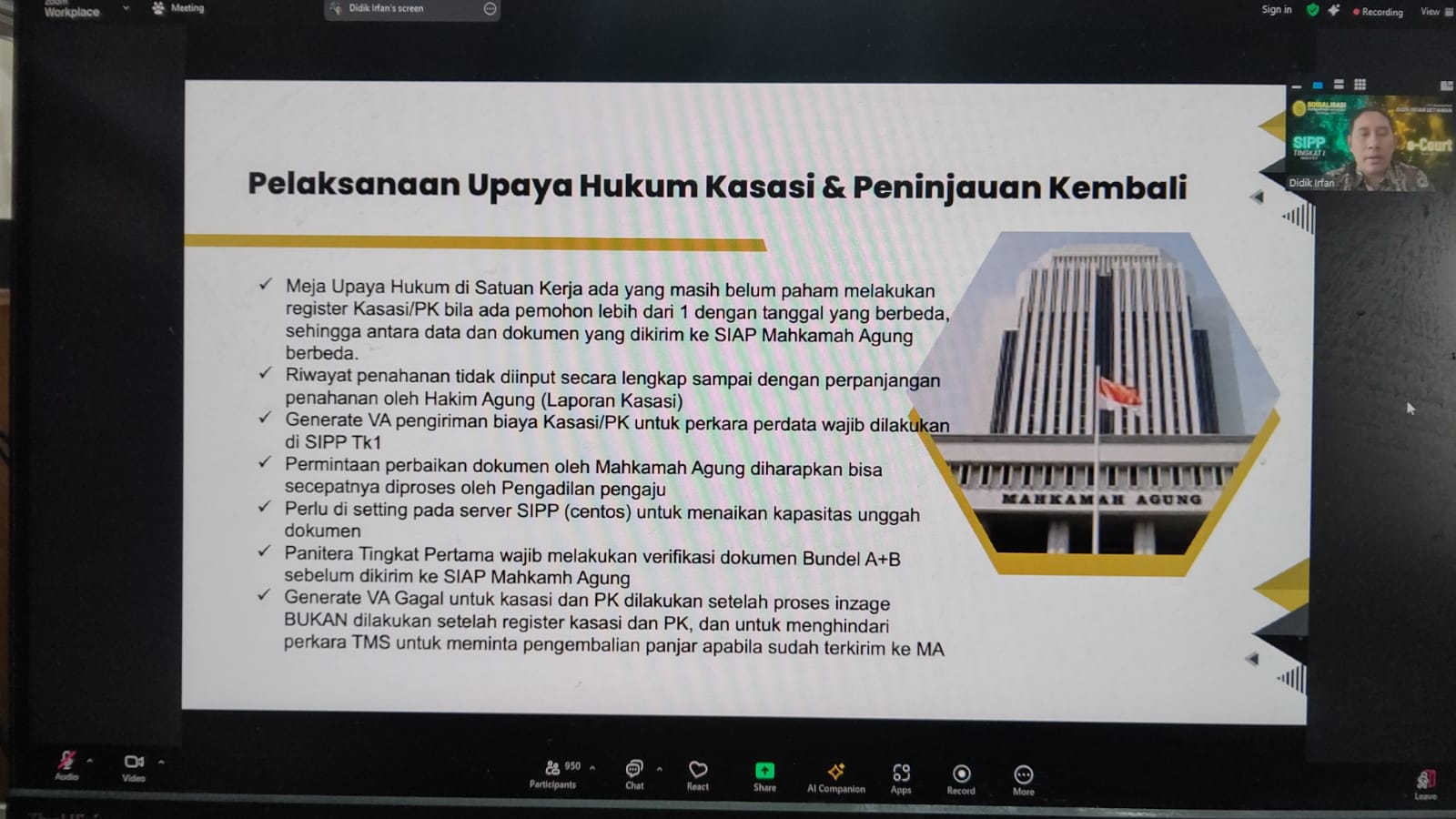 Pengadilan Negeri Pekanbaru mengikuti Kegiatan Sosialisasi Pembaruan Aplikasi SIPP versi 5.6.0 dan eCourt versi 6.0.0 secara Daring