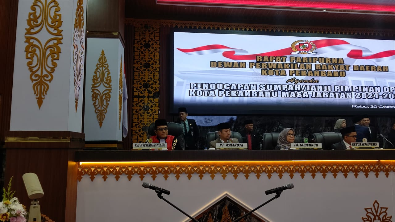 Kamis, 31-10-2024 | 14:46:12 WIBPekanbaru – Rabu, 30 Oktober 2024. Ketua Pengadilan Negeri Pekanbaru Bapak Raden Heru Kuntodewo, S.H., M.H. Mengambil Sumpah/ Janji Pimpinan DPRD Kota Pekanbaru masa jabatan 2024- 2029 di ruang Rapat Paripurna DPRD Kota Pekanbaru pada Hari Rabu tanggal 30/10/2024.