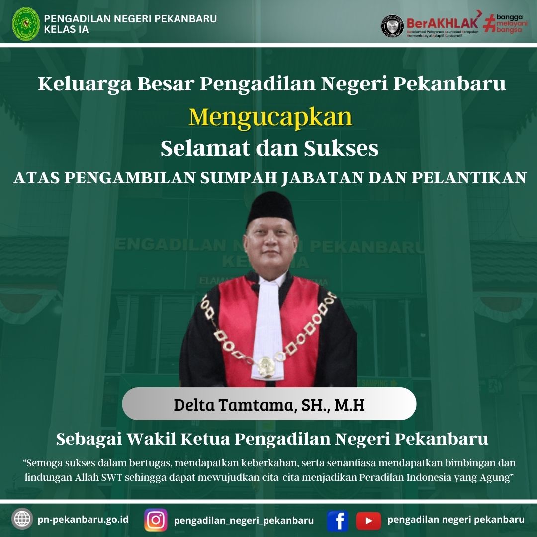 Selamat Dan Sukses ATAS PENGAMBILAN SUMPAH JABATAN DAN PELANTIKAN Delta Tamtama, SH., M.H