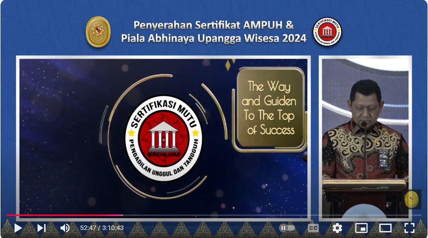 Pengadilan Negeri Pekanbaru Memperoleh 3 (Tiga) Penghargaan Dalam Acara Penyerahan Sertifikasi Mutu Pengadilan Unggul dan Tangguh (AMPUH) dan Piala ABHINAYA UPANGGA WISESA Tahun 2024