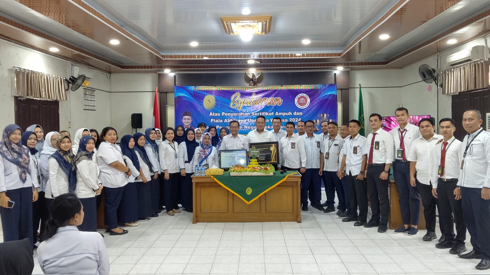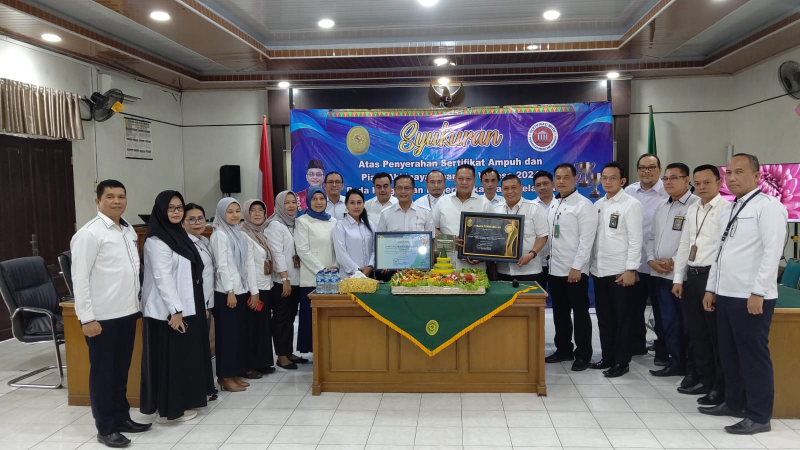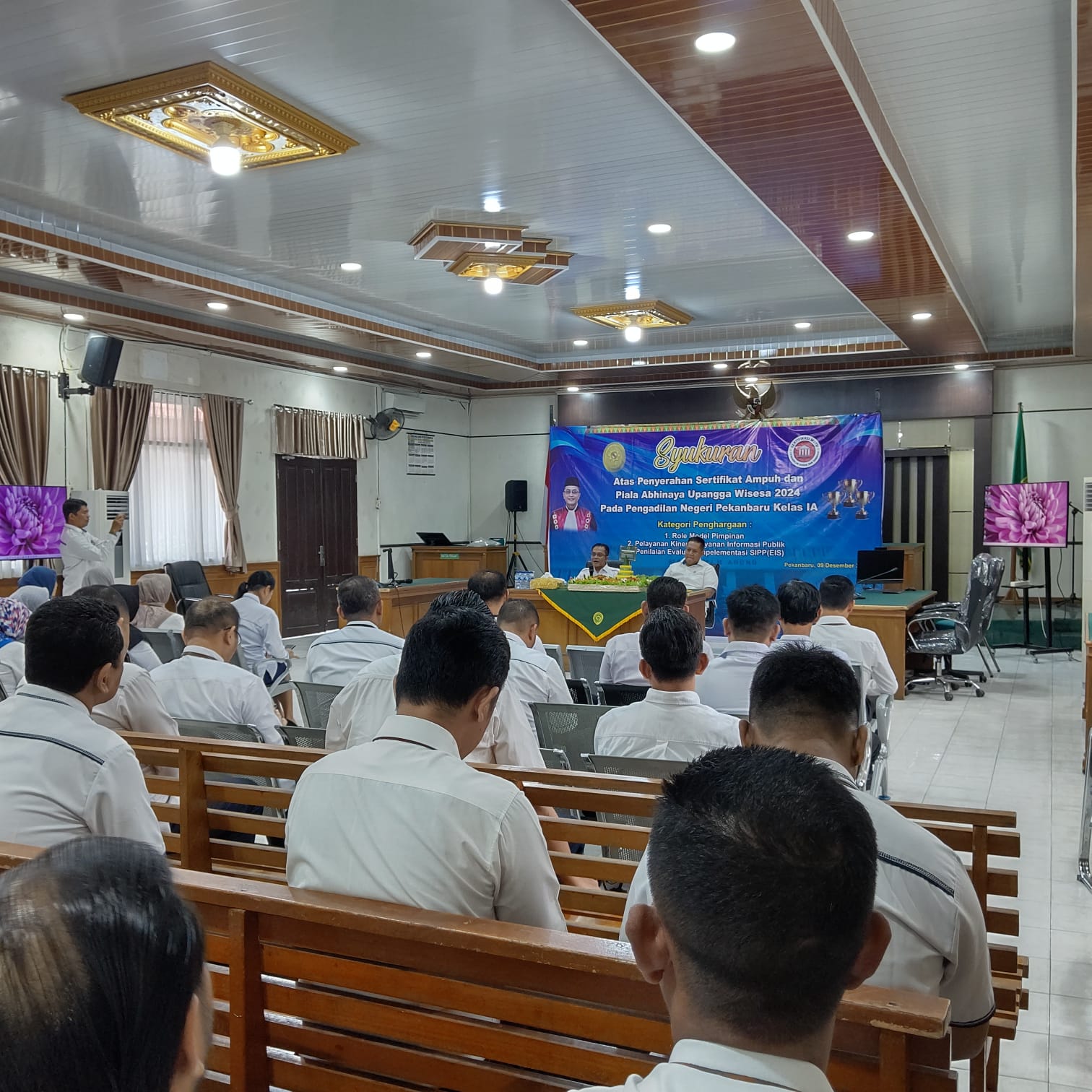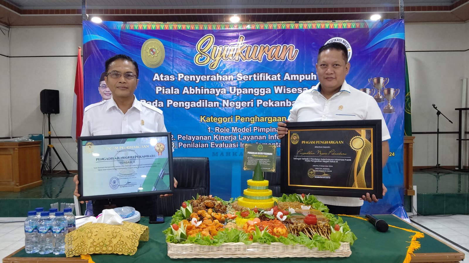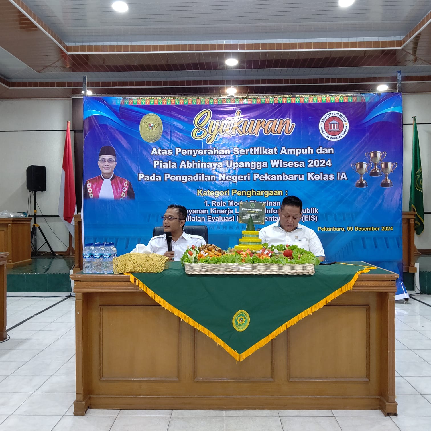 Pengadilan Negeri Pekanbaru mengadakan Acara Syukuran Atas Penyerahan Sertifikat Mutu Pengadilan Unggul dan Tangguh (AMPUH) dan Piala ABHINAYA UPANGGA WISESA Tahun 2024