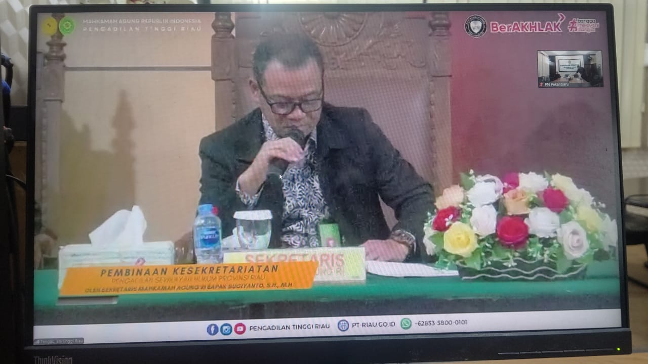 Pengadilan Negeri Pekanbaru mengikuti Pembinaan oleh Sekretaris Mahkamah Agung RI secara Luring dan Daring