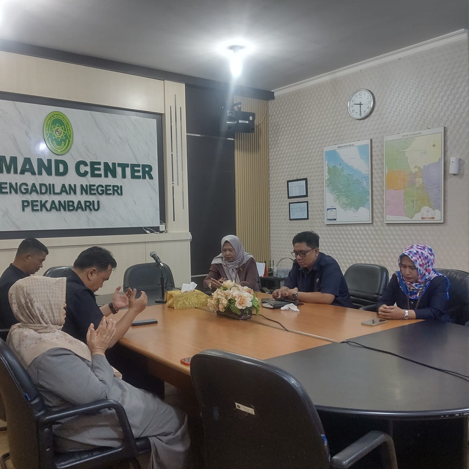Pekanbaru - Selasa, 17 Desember 2024. Bertempat di Ruang Command Center Pengadilan Negeri Pekanbaru, Hakim, Panitera Muda, Kepala Sub Bagian pada Pengadilan Negeri Pekanbaru mengikuti Pembinaan oleh Sekretaris Mahkamah Agung RI secara Daring sedangkan Ketua, Wakil Ketua, Panitera, Sekretaris, dan Calon Hakim Pengadilan Negeri Pekanbaru mengikuti Pembinaan oleh Sekretaris Mahkamah Agung RI secara luring di Pengadilan Tinggi Riau dalam rangka Persiapan Pembangunan Zona Integritas.