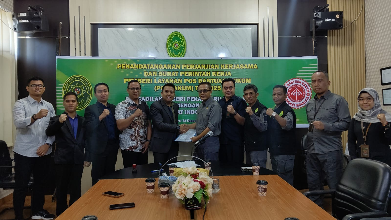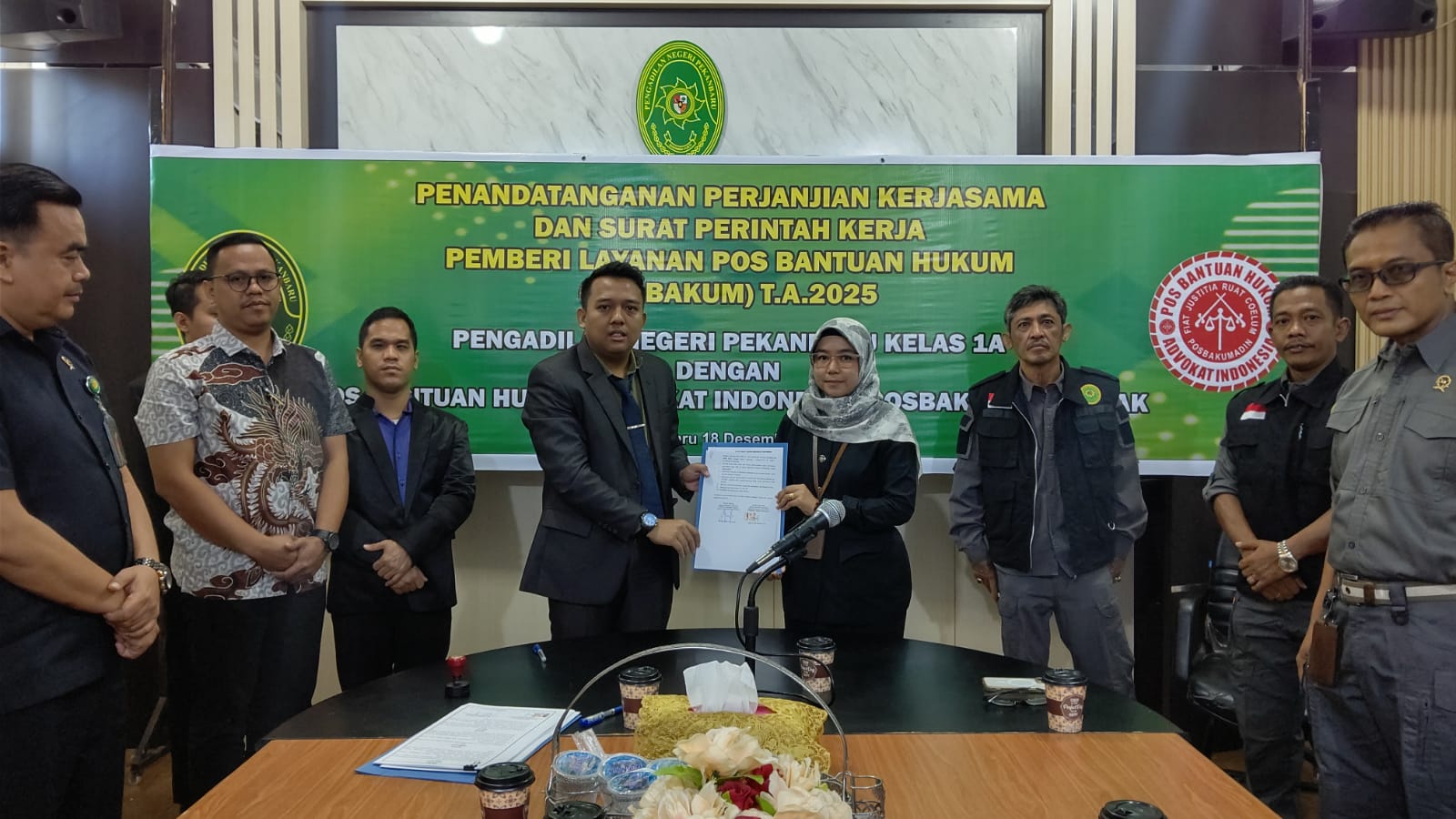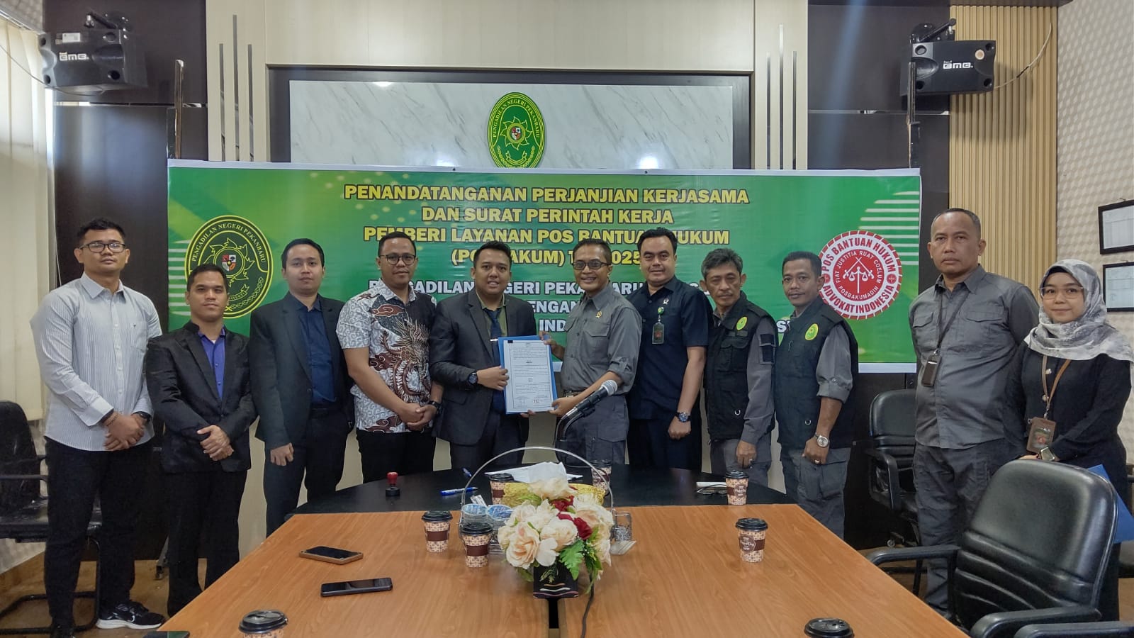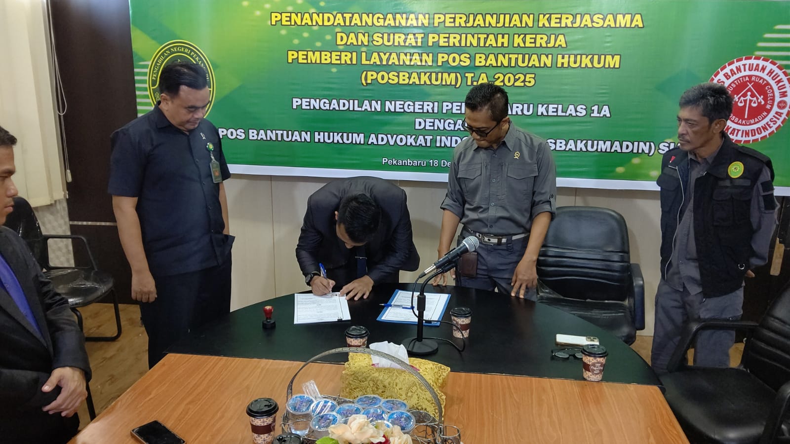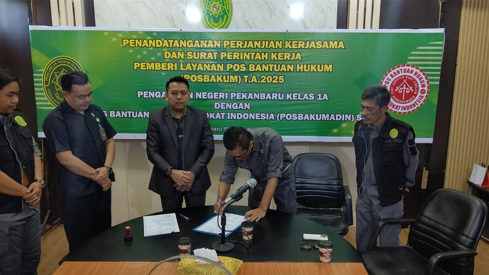 Penandatanganan Perjanjian Kerjasama dan Surat Perintah Kerja Pemberi Layanan Pos Bantuan Hukum (Posbakum) T.A. 2025 Pengadilan Negeri Pekanbaru dengan Pos Bantuan Hukum Advokat Indonesia (Posbakumadin) Siak