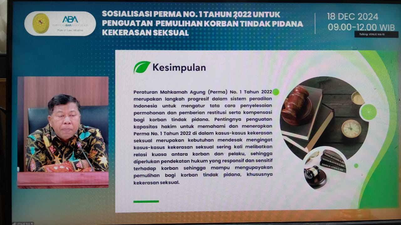 Pengadilan Negeri Pekanbaru mengikuti Sosialisasi PERMA No.1 TAHUN 2022 untuk Penguatan Pemulihan Korban Tindak Pidana Kekerasan Seksual Secara Daring