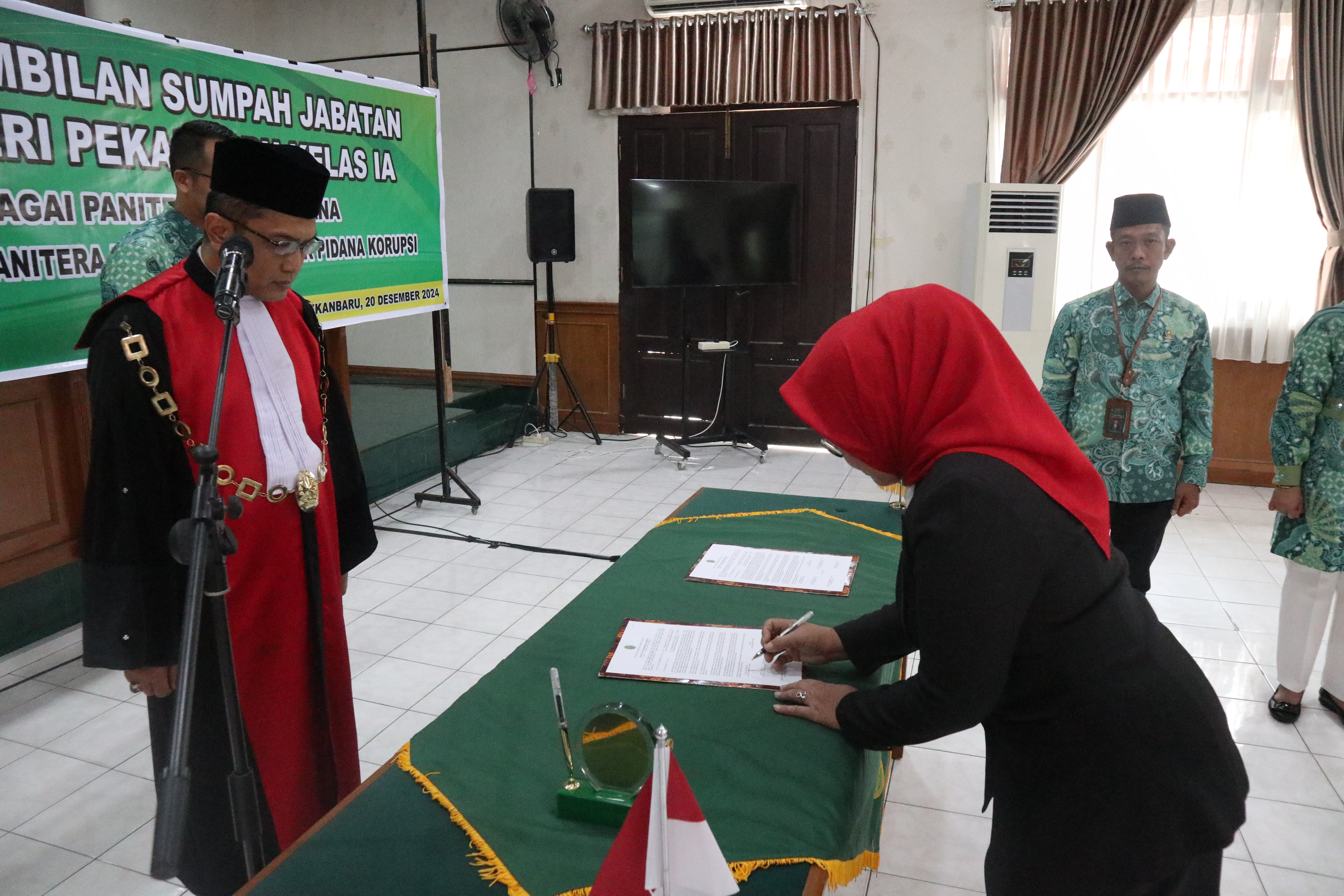 Senin, 23-12-2024 | 05:06:32 WIBPekanbaru – Jumat, 20 Desember 2024. Bertempat di Ruang Sidang Utama Pengadilan Negeri Pekanbaru dilaksanakan acara Pelantikan dan Pengambilan Sumpah Jabatan Panitera muda Pidana Pengadilan Negeri Pekanbaru an. Ibu Fitri Yenti, S.H. dan Bapak Adrian Saherwan, S.H. Sebagai Panitera Muda Tindak Pidana Korupsi.