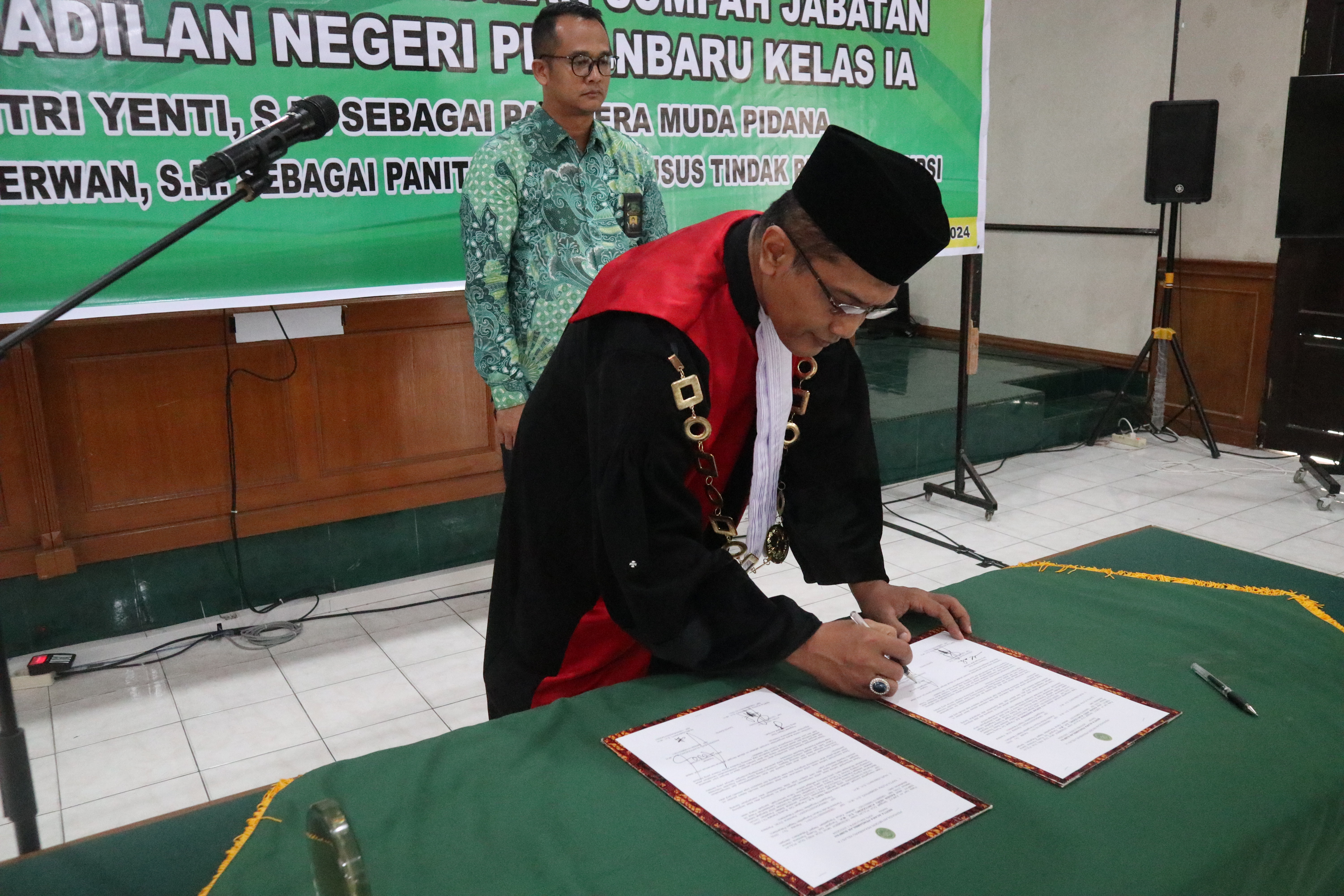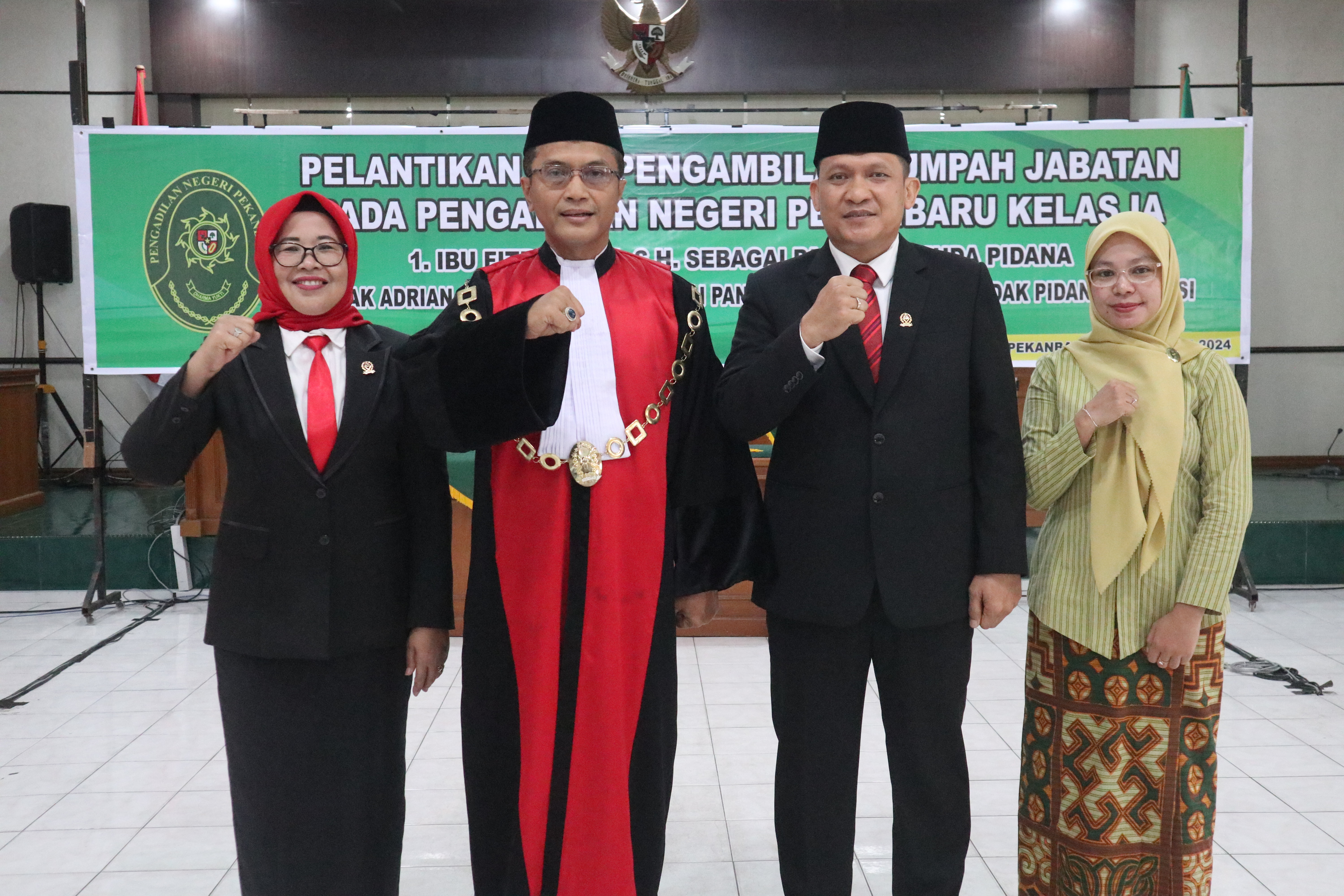 Pengambilan Sumpah dan Pelantikan dipimpin langsung oleh Ketua Pengadilan Negeri Pekanbaru Bapak Raden Heru Kuntodewo, S.H., M.H. Acara tersebut dihadiri oleh Wakil Ketua Bapak Delta Tamtama, S.H., M.H., Para Hakim, Pejabat Struktural dan Fungsional Pengadilan Negeri Pekanbaru.
