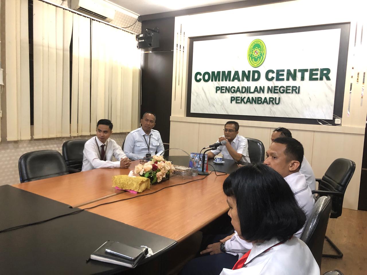 Pekanbaru - Senin, 23 Desember 2024. Bertempat di Ruang Command Center, Ketua Pengadilan Negeri Pekanbaru Bapak Raden Heru Kuntodewo, S.H., M.H. dan dihadiri oleh Hakim, Panitera, Sekretaris, Calon Hakim pada Pengadilan Negeri Pekanbaru mengikuti Kegiatan Koordinasi dan Sosialisasi Majalah Dandapala Digital secara Daring.
