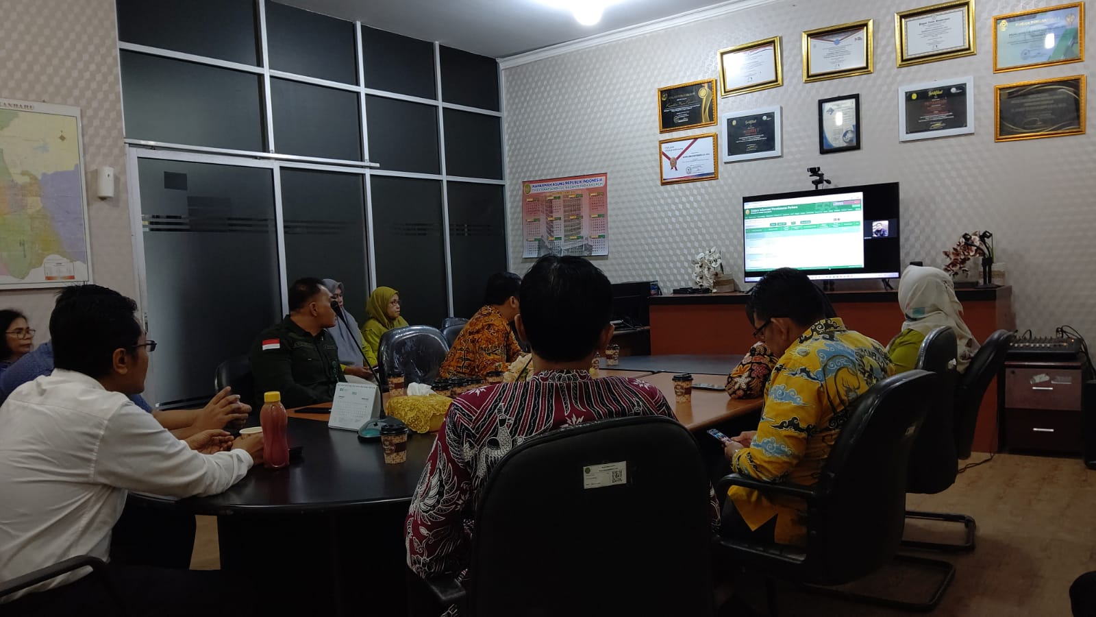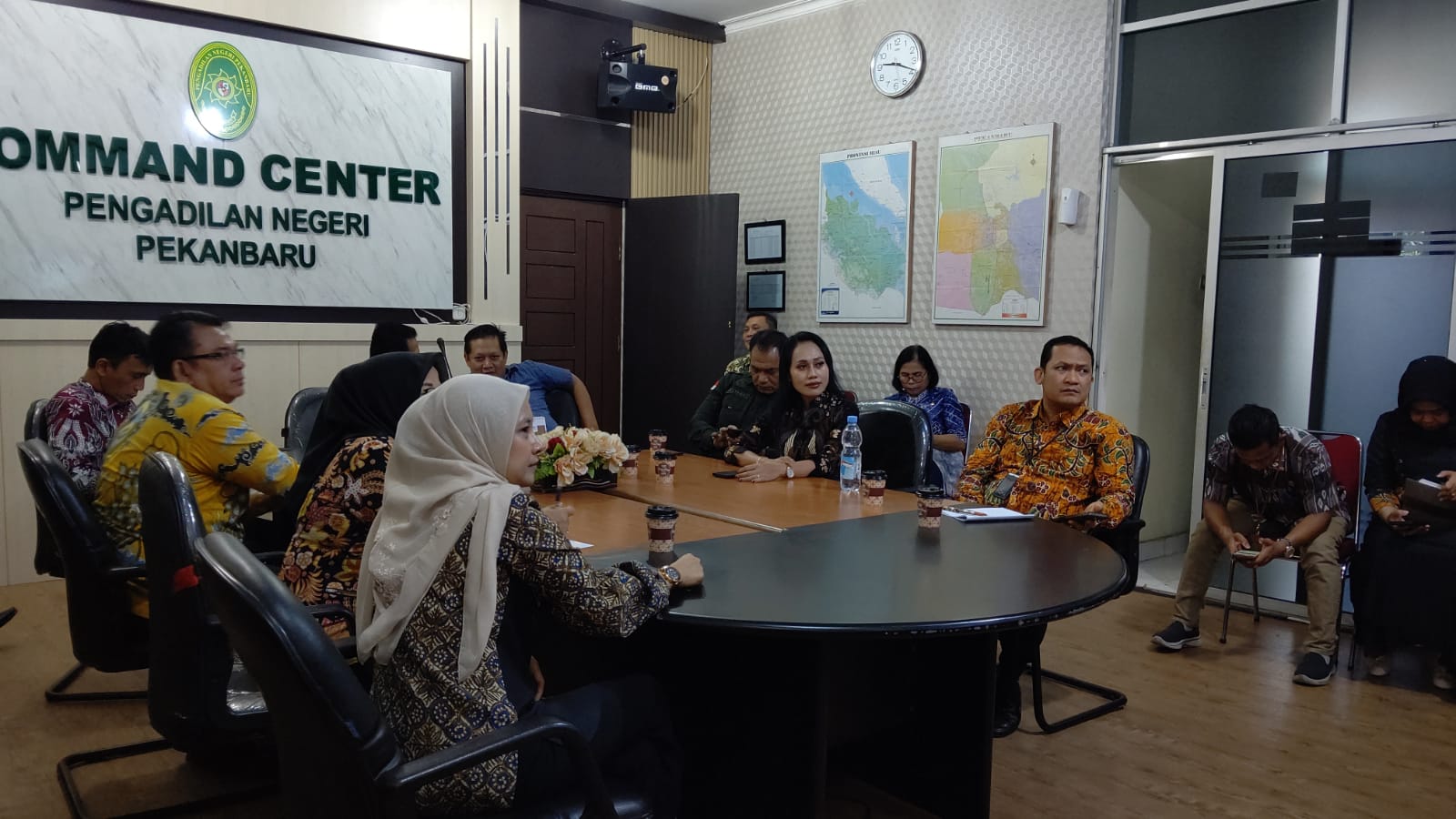 Pekanbaru - Kamis, 23 Januari 2025. Bertempat di Ruang Command Center, Ketua Pengadilan Negeri Pekanbaru Bapak Raden Heru Kuntodewo, S.H., M.H. di dampingi oleh Wakil Ketua Bapak Delta Tamtama, S.H., M.H. dan dihadiri oleh Hakim, Panitera, Panitera Muda, Panitera Pengganti, Jurusita, serta Operator IT pada Pengadilan Negeri Pekanbaru mengikuti Kegiatan Sosialisasi Pembaruan Aplikasi SIPP Tingkat Pertama Versi 5.6.5 dan Aplikasi e-Berpadu Versi 4.0.0 secara Daring.