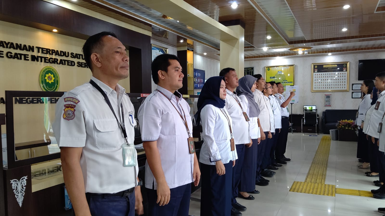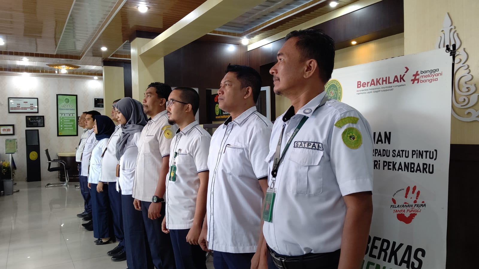 Pekanbaru - Senin, 10 Februari 2025. Bertempat di Ruang Pelayanan Terpadu Satu Pintu (PTSP) Pengadilan Negeri Pekanbaru telah dilaksanakan pembinaan PTSP oleh Pejabat Pengelola PTSP, Penanggung jawab PTSP kepada Petugas PTSP Pengadilan Negeri Pekanbaru. Dalam Pembinaan PTSP tersebut, Pejabat Pengelola PTSP, Penanggung jawab PTSP Pengadilan Negeri Pekanbaru mengingatkan kepada para petugas untuk memberikan pelayanan terbaik kepada masyarakat sesuai SOP serta menerapkan 5S dan 5R.